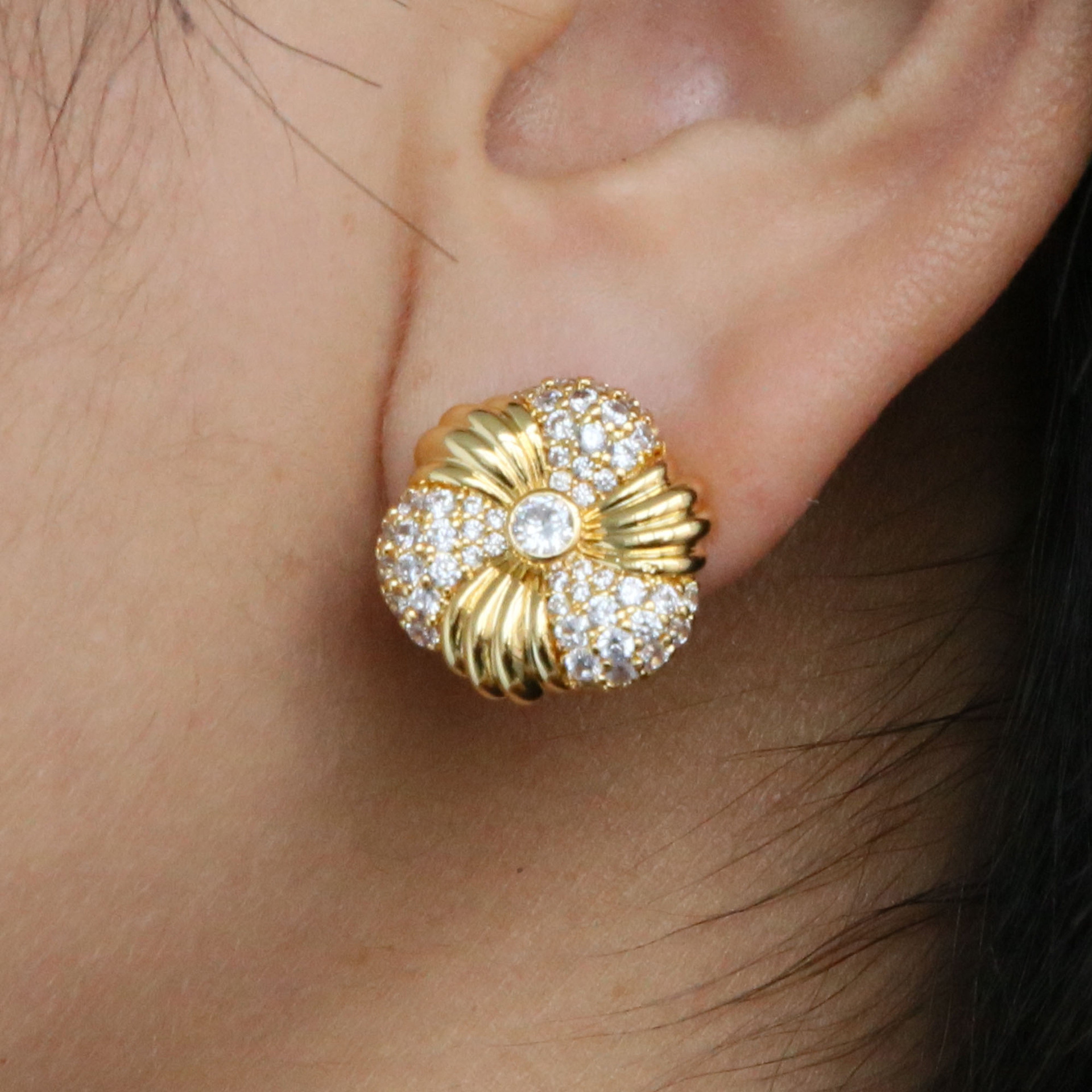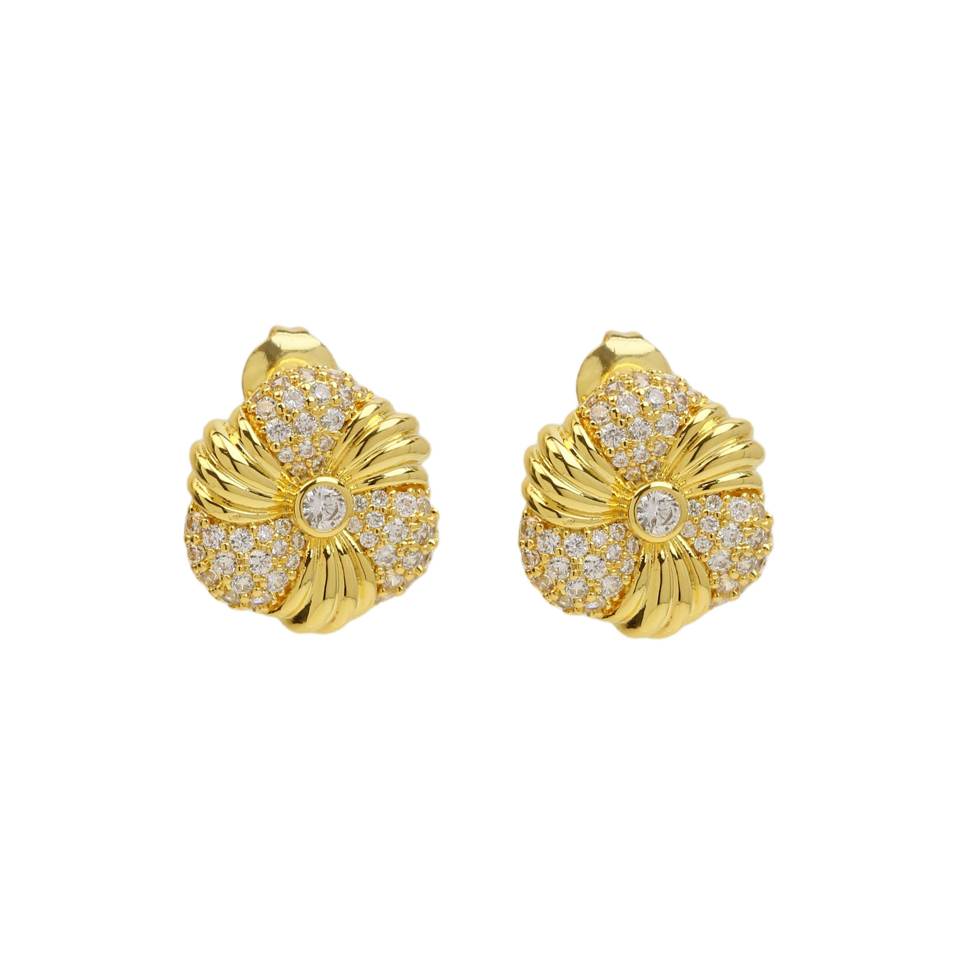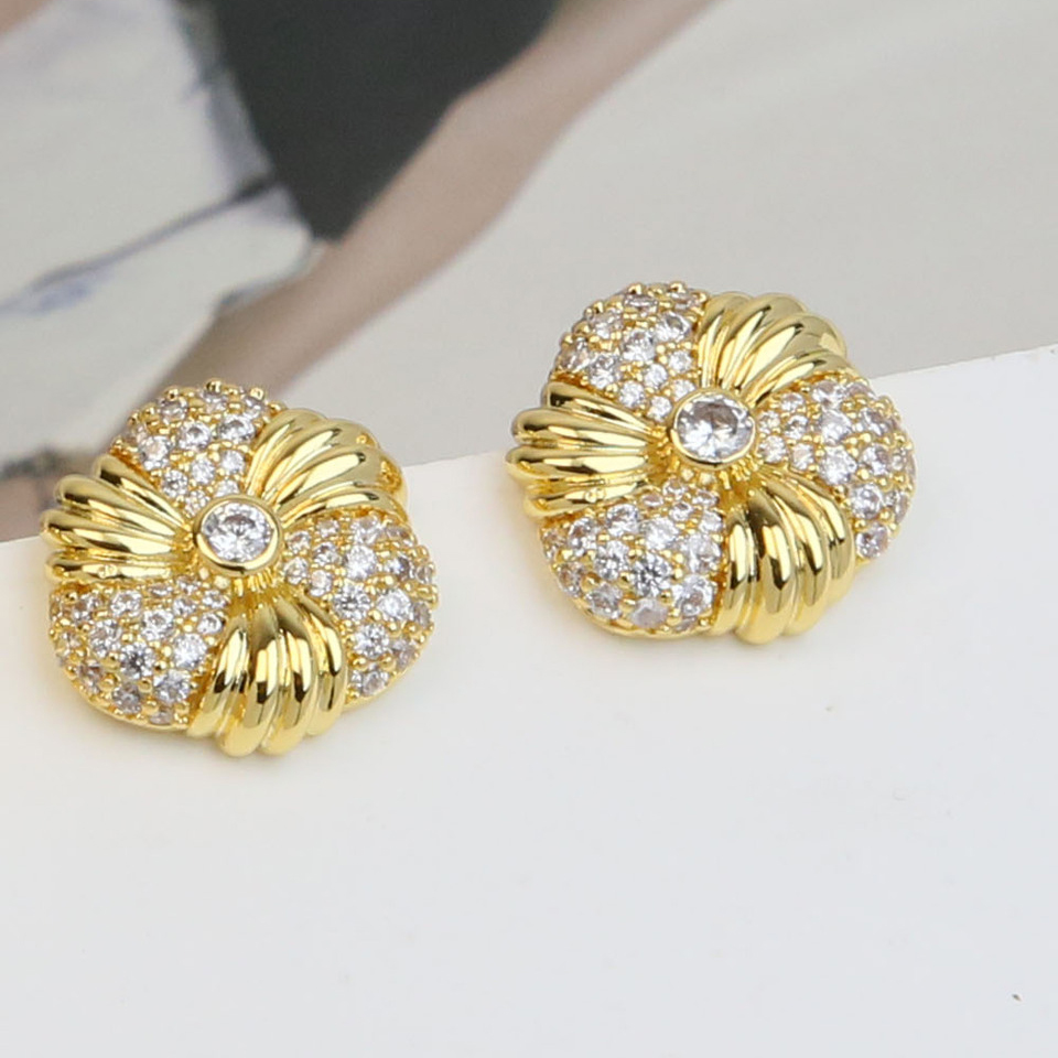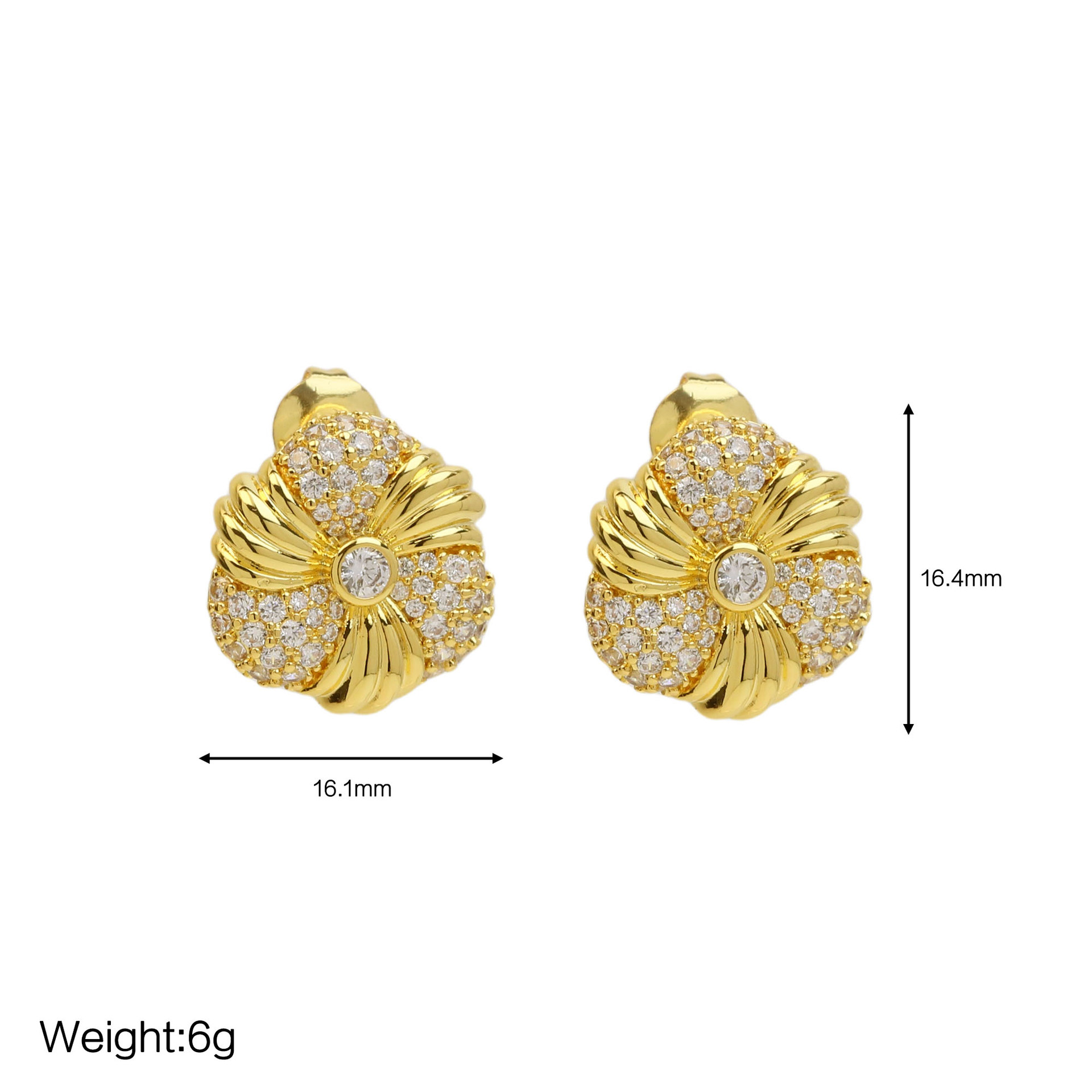 Boucles d'oreilles en laiton zircon cubique pavent, fleur, Plaqué or 18K, bijoux de mode & pavé de micro zircon & pour femme, Vendu par paire