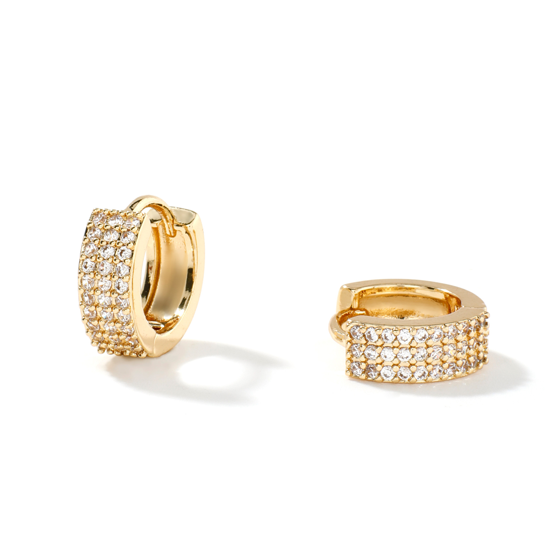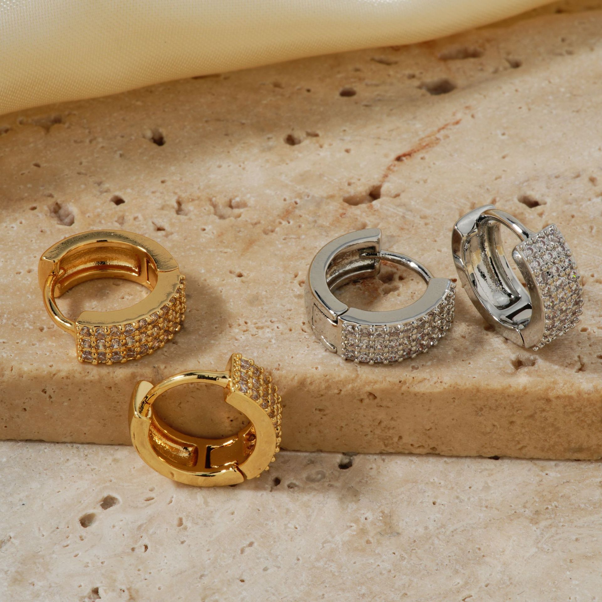 Boucles d'oreilles en laiton zircon cubique pavent, Placage, trois pièces & pour femme, doré, Vendu par fixé