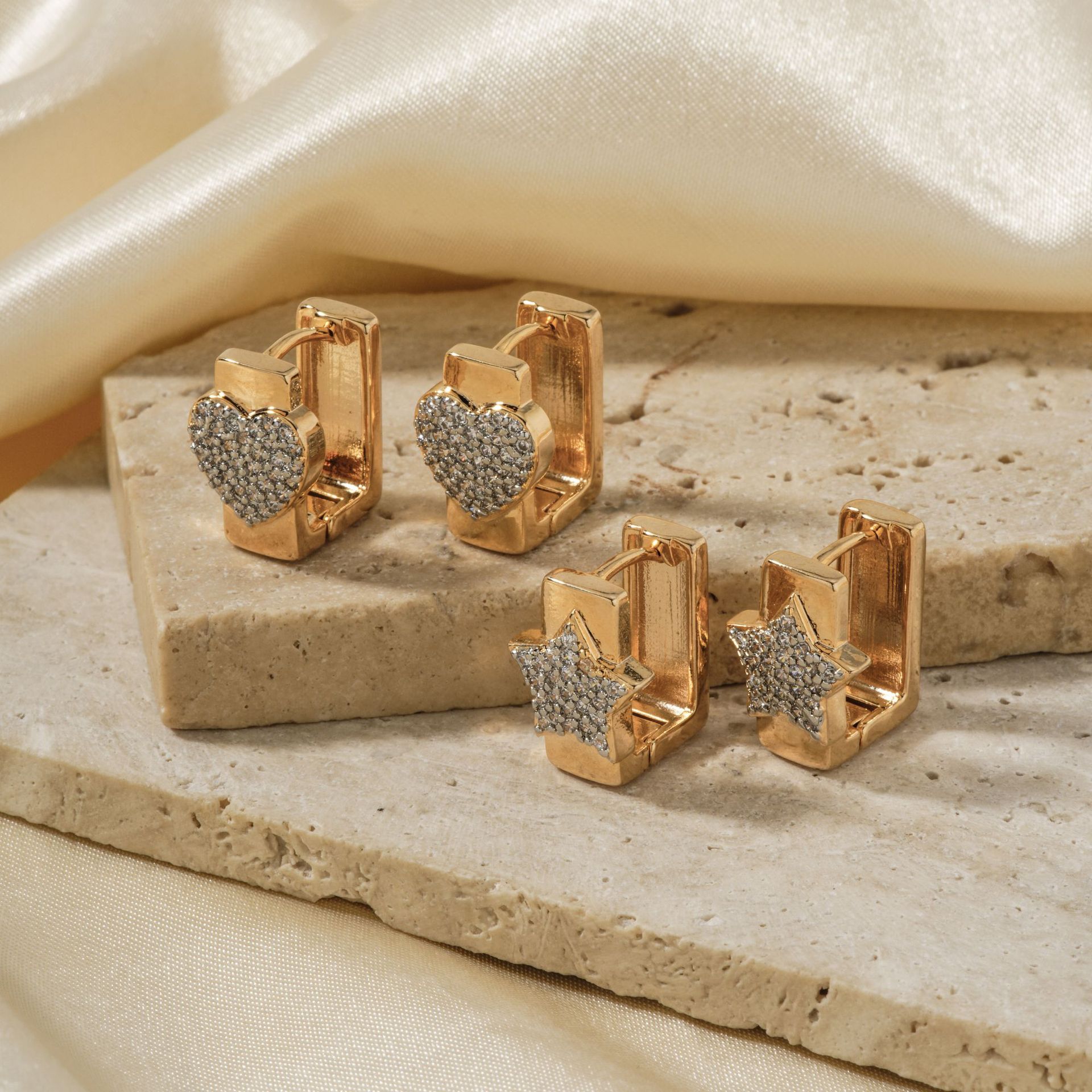 Boucles d'oreilles en laiton zircon cubique pavent, Placage, trois pièces & pour femme, doré, Vendu par fixé