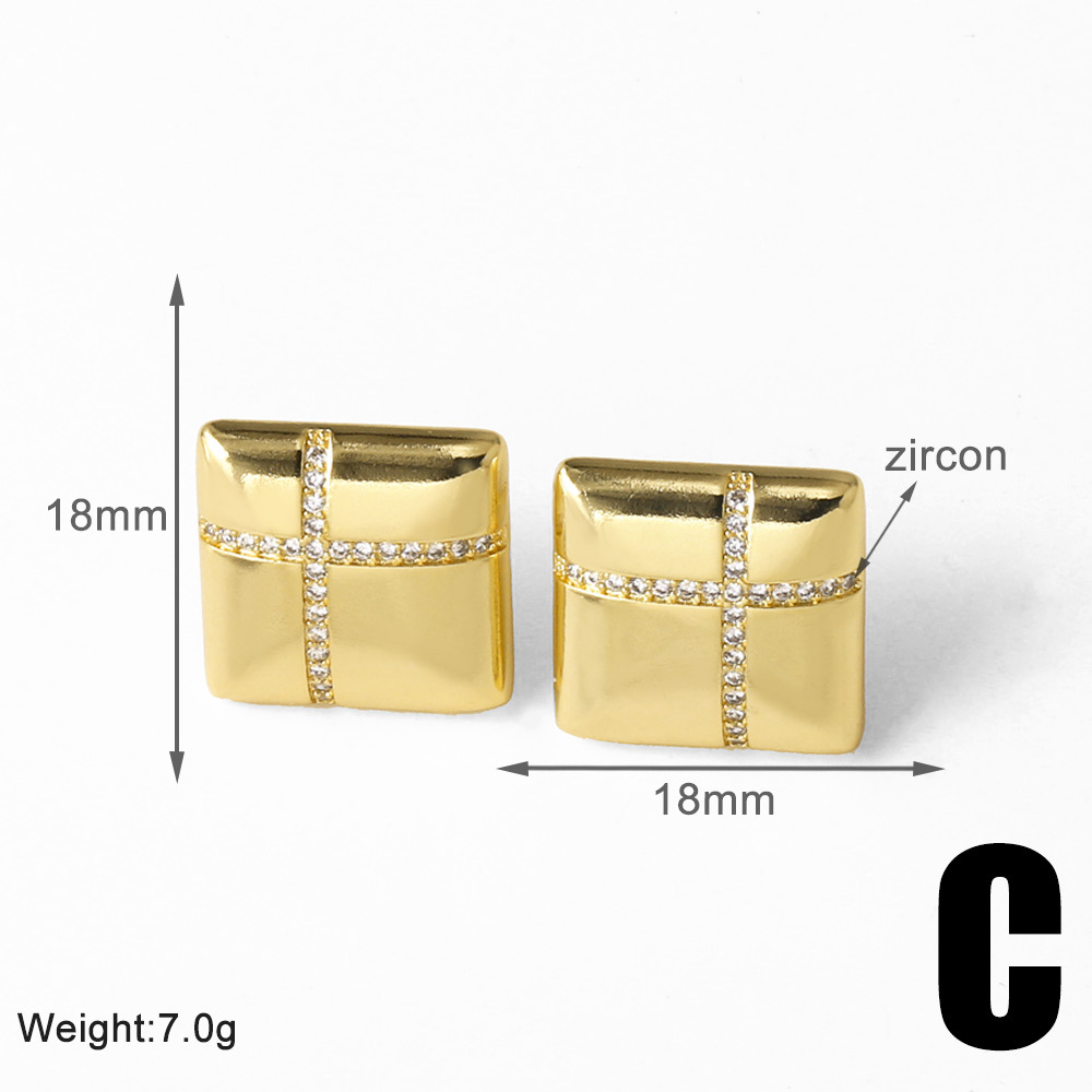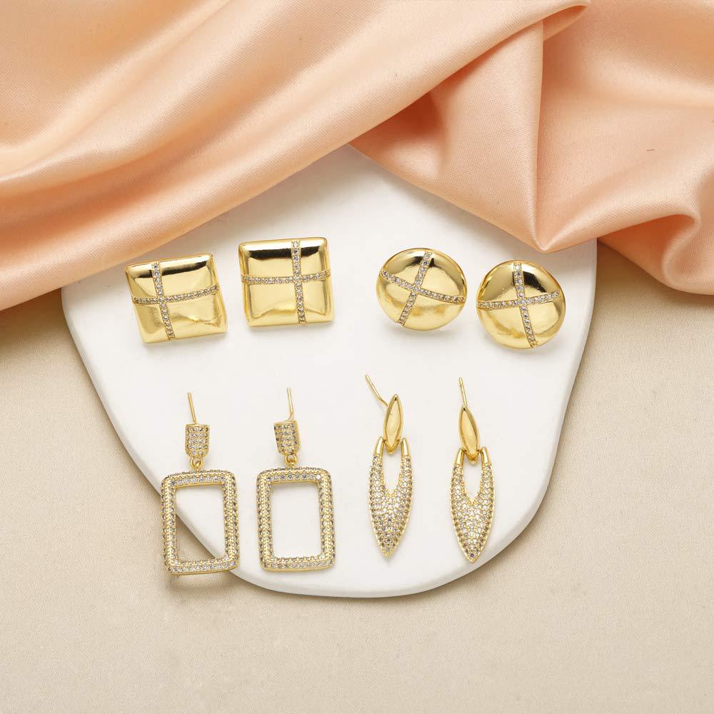 Boucles d'oreilles en laiton zircon cubique pavent, Placage, trois pièces & pour femme, doré, Vendu par fixé