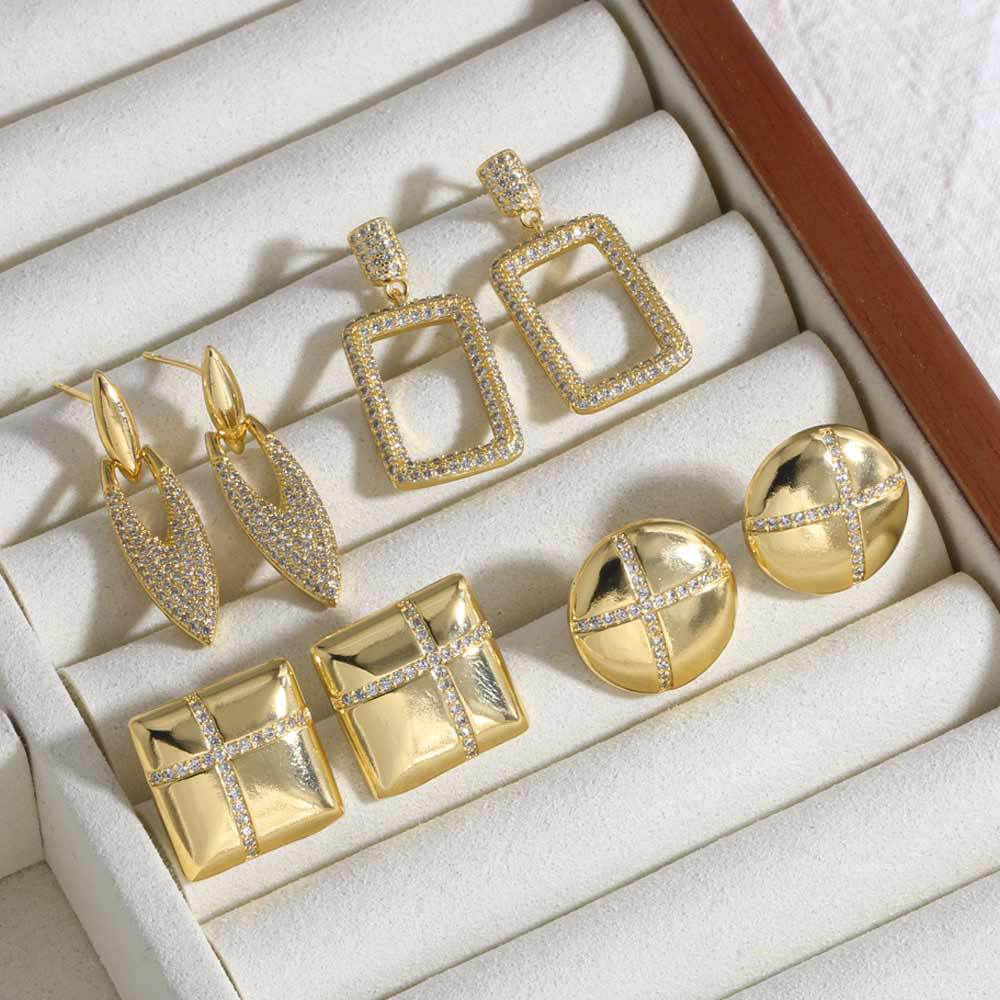 Boucles d'oreilles en laiton zircon cubique pavent, Placage de couleur d'or, bijoux de mode & modèles différents pour le choix & pavé de micro zircon, doré, protéger l'environnement, sans nickel, plomb et cadmium, Vendu par paire