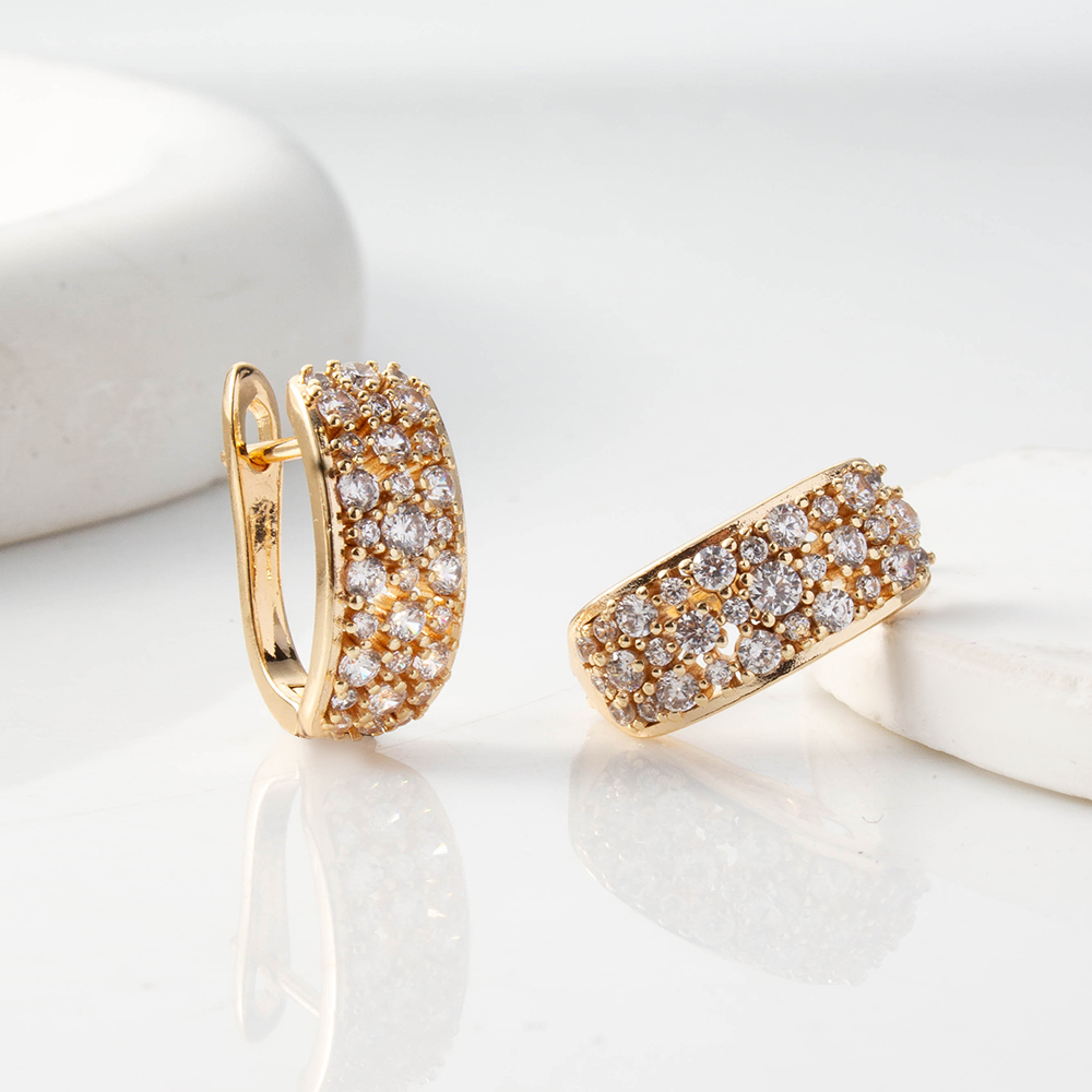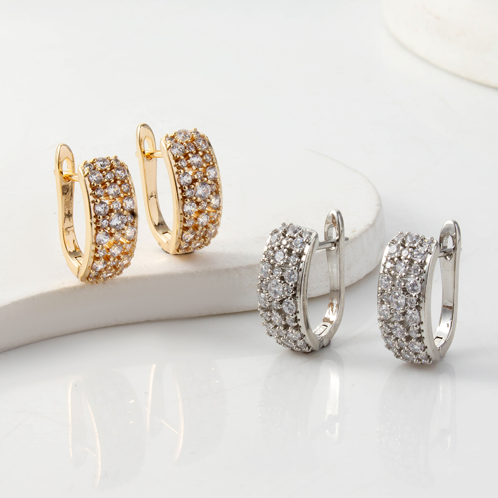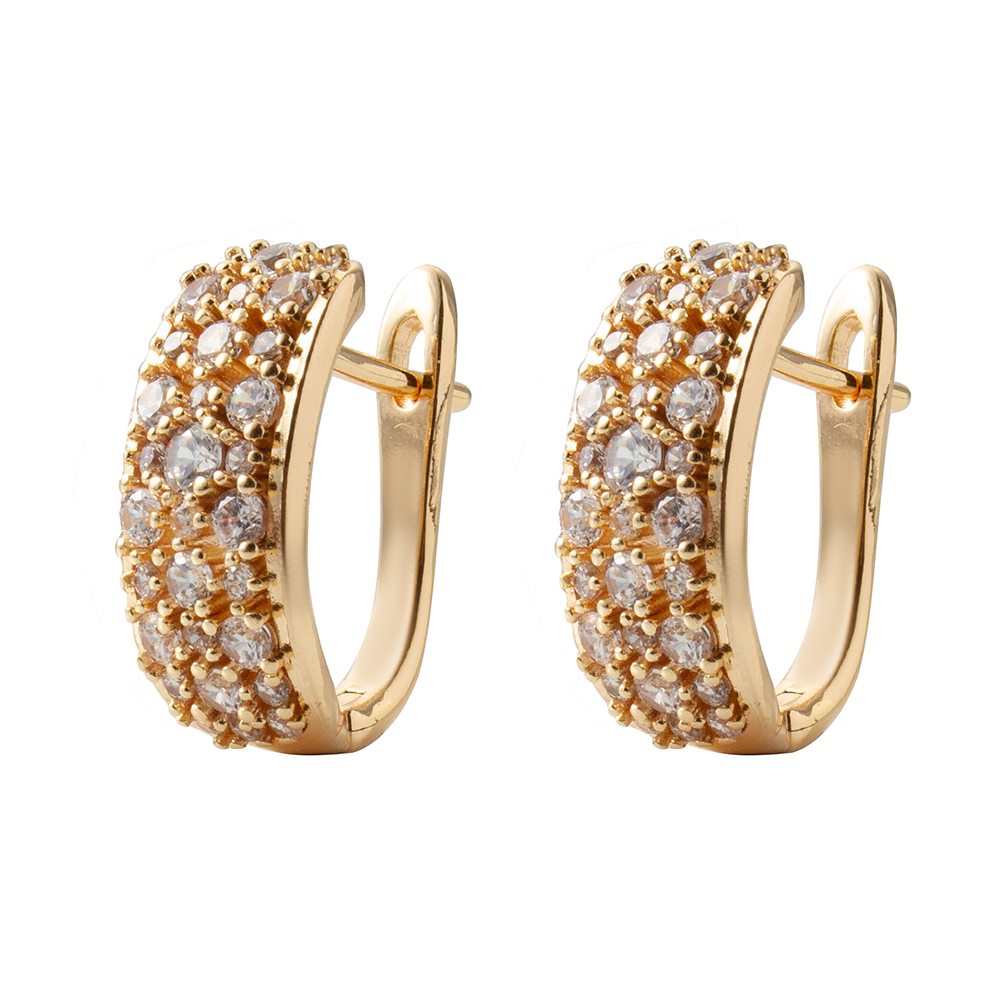 Boucles d'oreilles en laiton zircon cubique pavent, Placage, trois pièces & pour femme, doré, Vendu par fixé