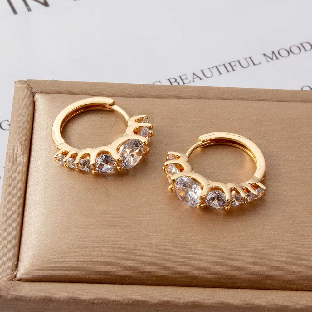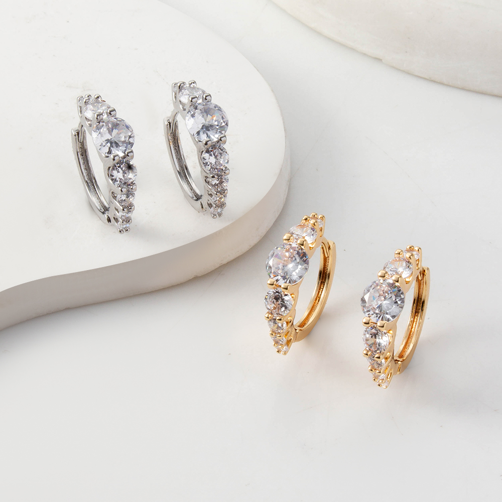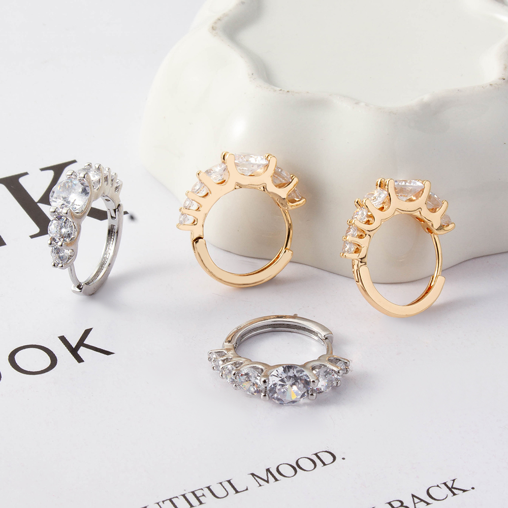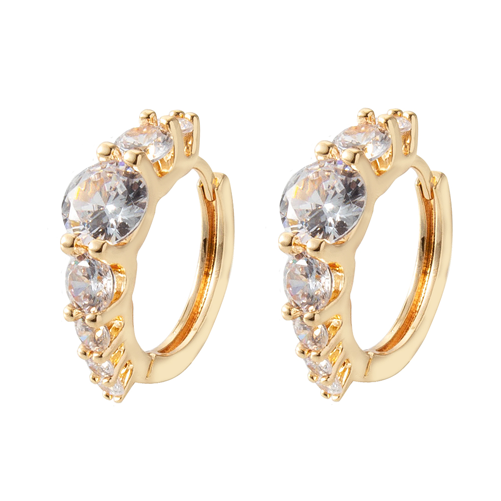 Boucles d'oreilles en laiton zircon cubique pavent, Placage, trois pièces & pour femme, doré, Vendu par fixé
