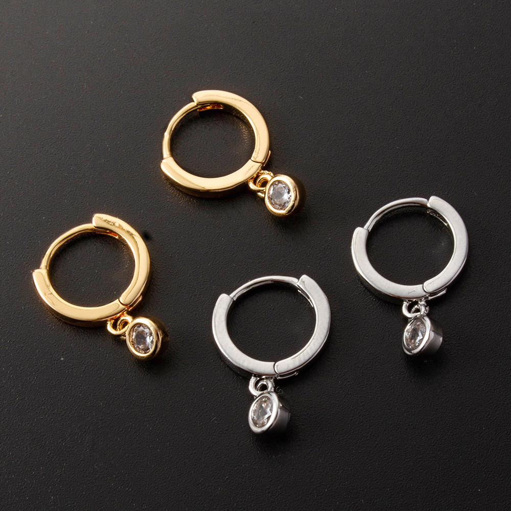 Boucles d'oreilles en laiton zircon cubique pavent, avec zircon cubique, moulage sous pression, pour femme, plus de couleurs à choisir, protéger l'environnement, sans nickel, plomb et cadmium, 11.20x1.80x17.50mm, 10pairescouple/sac, Vendu par sac