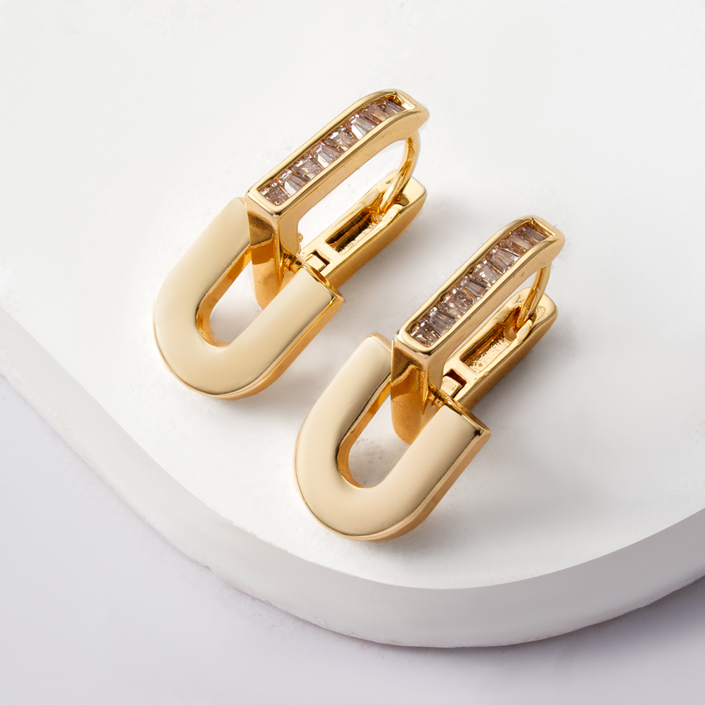 Boucles d'oreilles en laiton zircon cubique pavent, Placage, trois pièces & pour femme, doré, Vendu par fixé