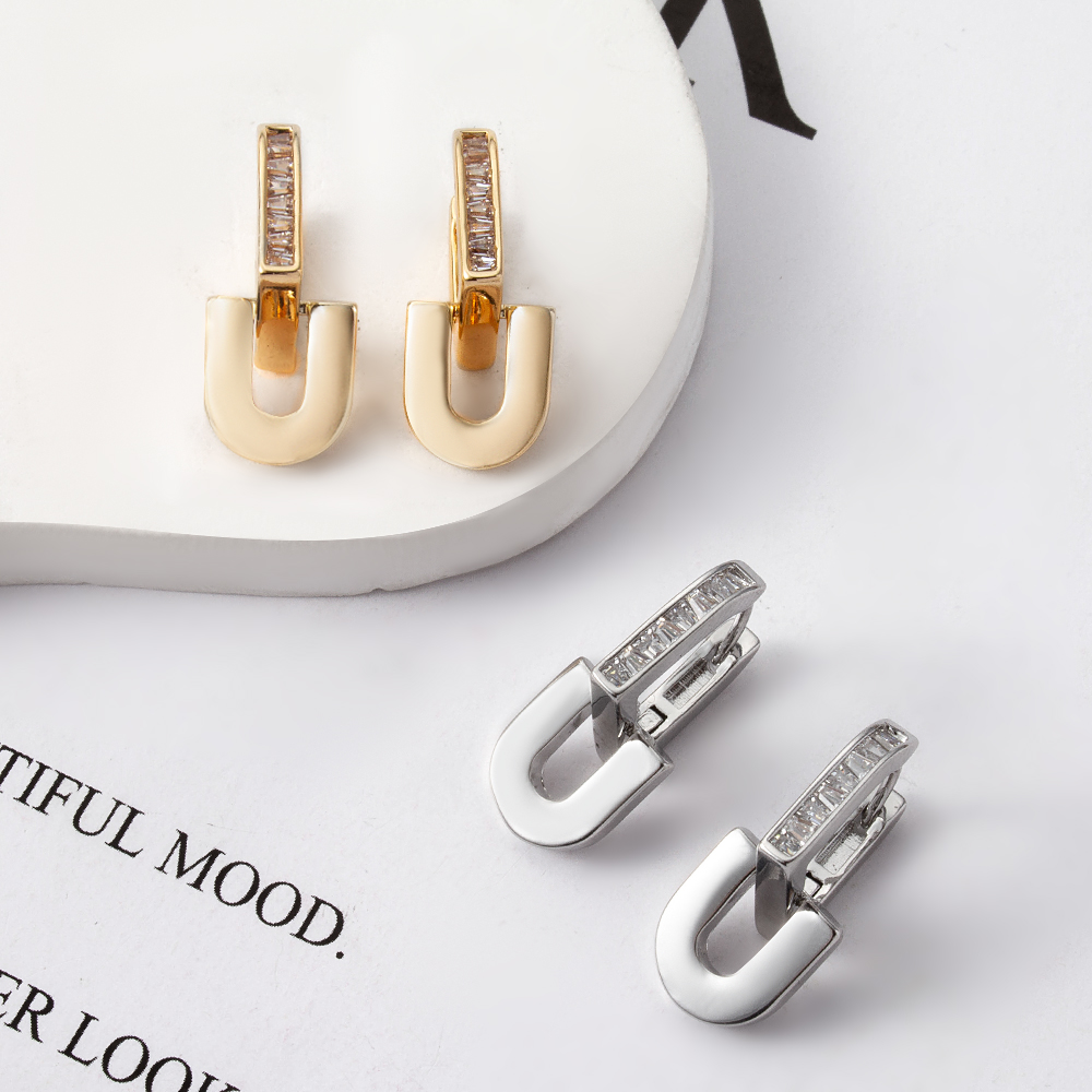 Boucles d'oreilles en laiton zircon cubique pavent, moulage sous pression, pavé de micro zircon & pour femme, plus de couleurs à choisir, protéger l'environnement, sans nickel, plomb et cadmium, 9.30x11.50x21.30mm, 10pairescouple/sac, Vendu par sac