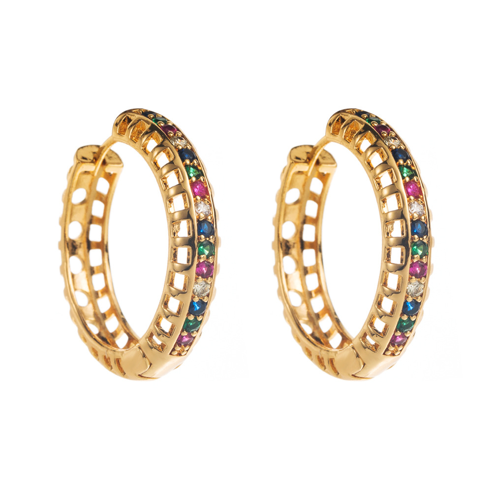 Boucles d'oreilles en laiton zircon cubique pavent, Placage, trois pièces & pour femme, doré, Vendu par fixé