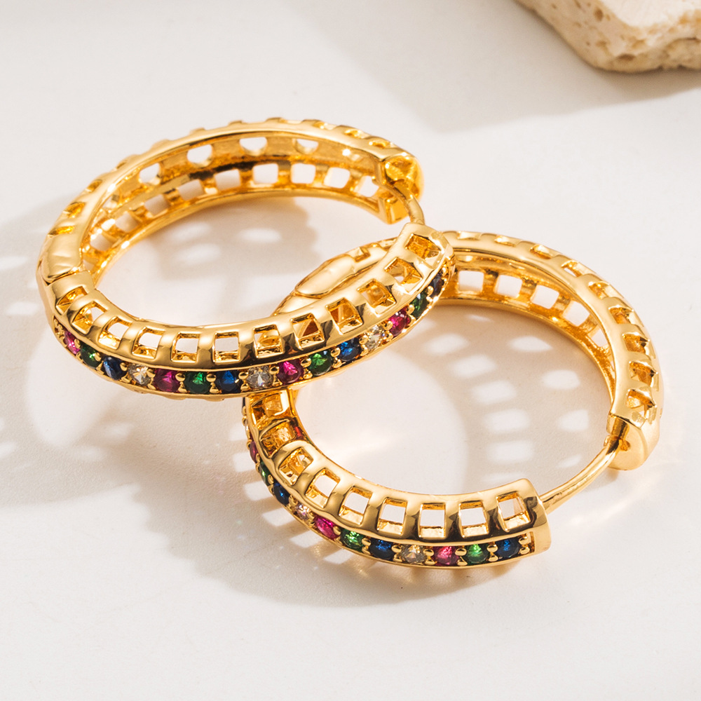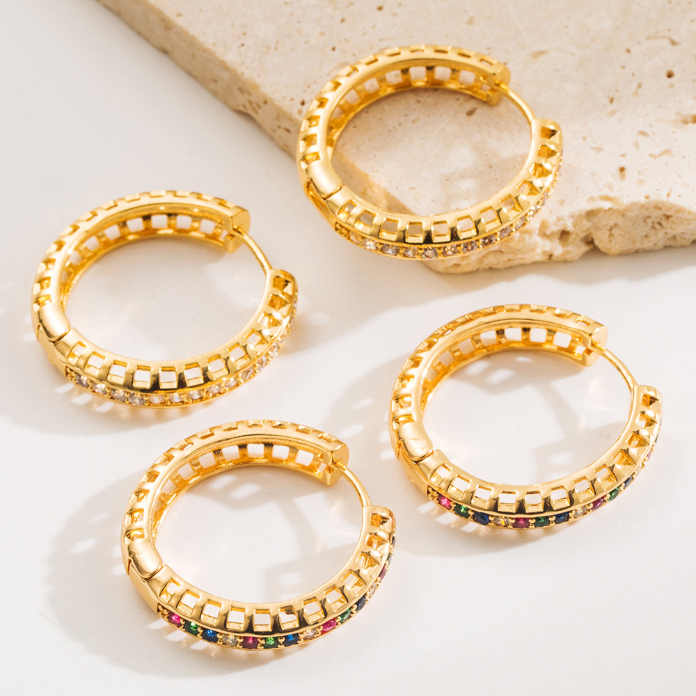 Boucles d'oreilles en laiton zircon cubique pavent, Placage de couleur d'or, bijoux de mode & pavé de micro zircon, plus de couleurs à choisir, protéger l'environnement, sans nickel, plomb et cadmium, Vendu par paire