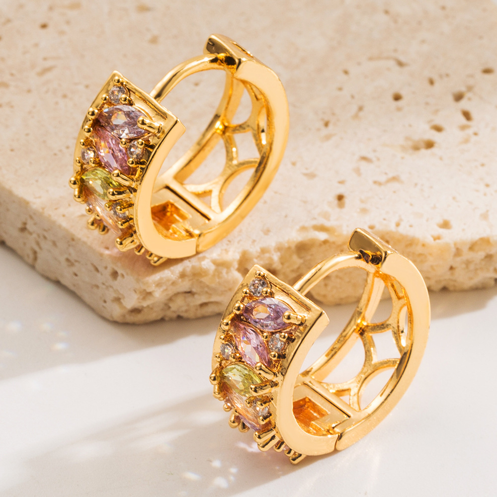 Boucles d'oreilles en laiton zircon cubique pavent, Placage de couleur d'or, bijoux de mode & pavé de micro zircon, plus de couleurs à choisir, protéger l'environnement, sans nickel, plomb et cadmium, Vendu par paire