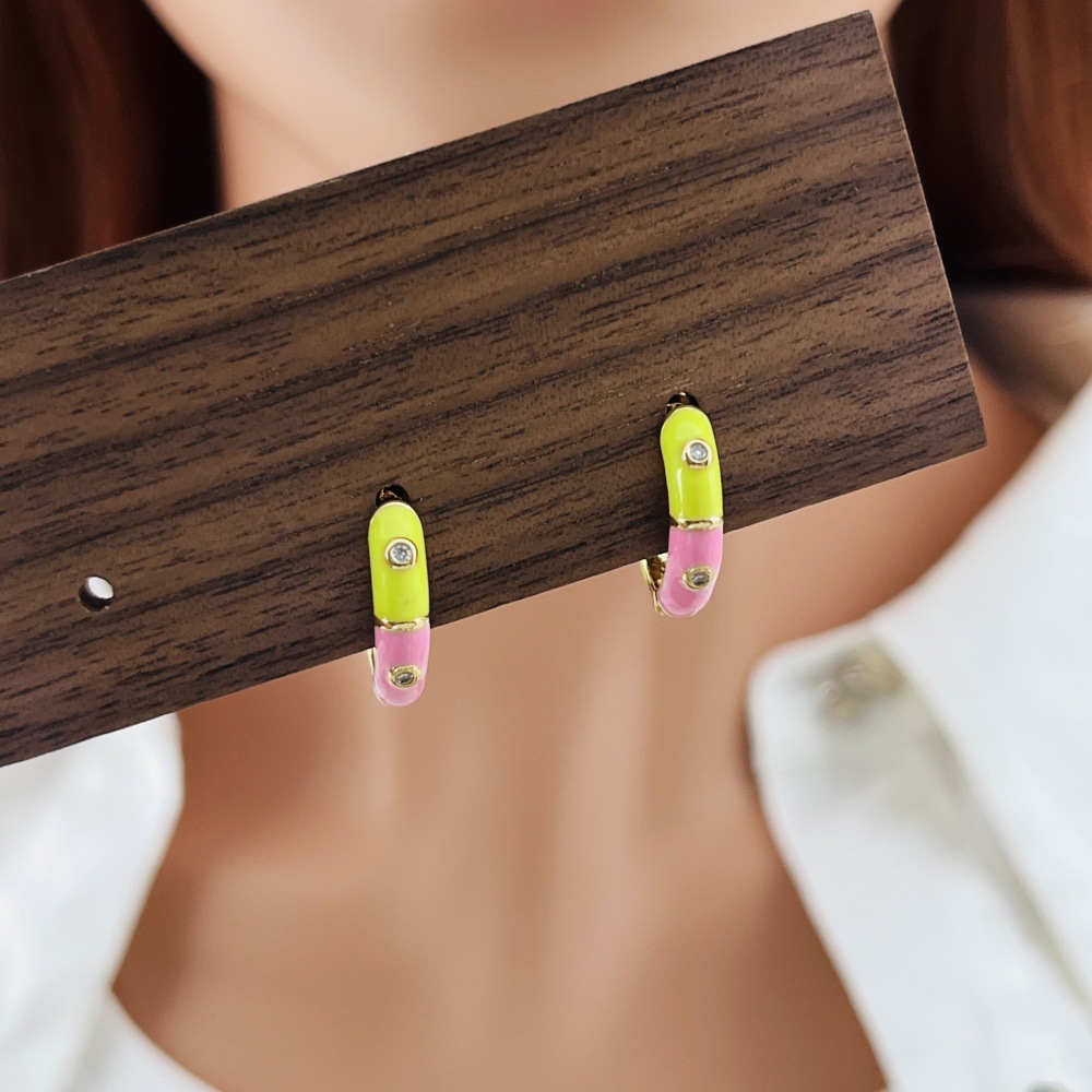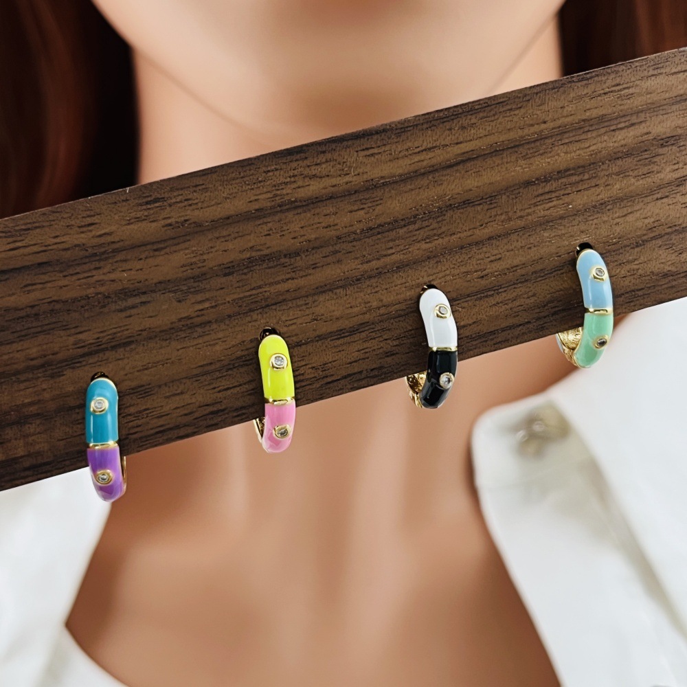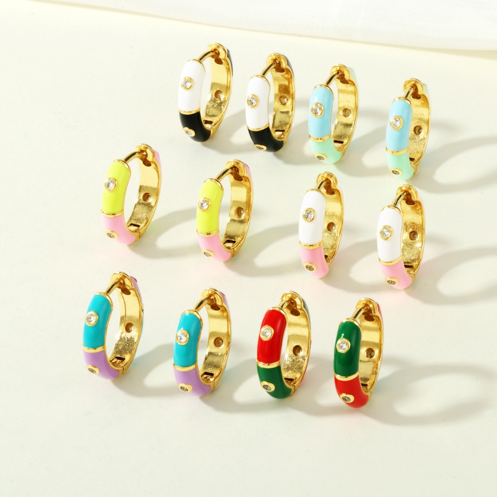 Boucles d'oreilles en laiton zircon cubique pavent, Placage de couleur d'or, pavé de micro zircon & pour femme & émail, plus de couleurs à choisir, protéger l'environnement, sans nickel, plomb et cadmium, Vendu par paire