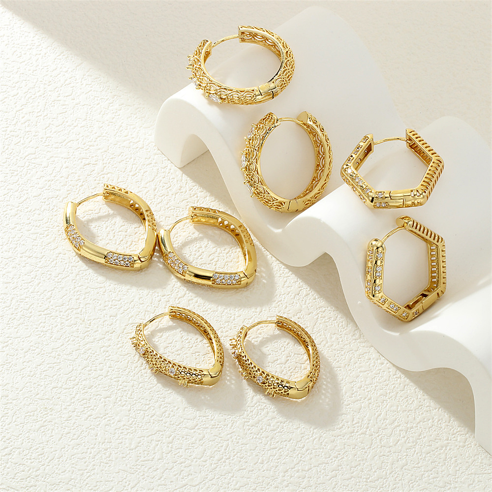 Boucles d'oreilles en laiton zircon cubique pavent, Placage, trois pièces & pour femme, doré, Vendu par fixé