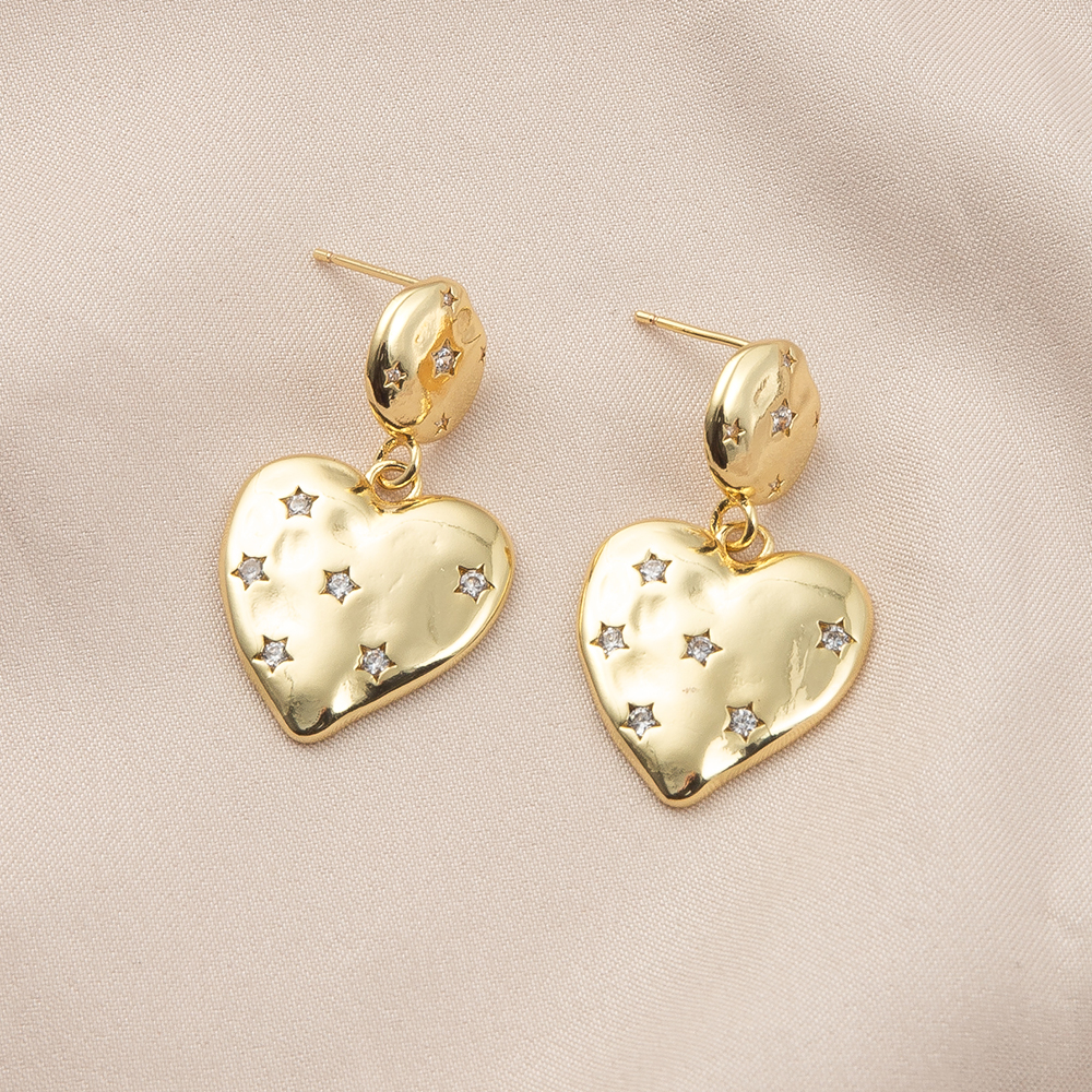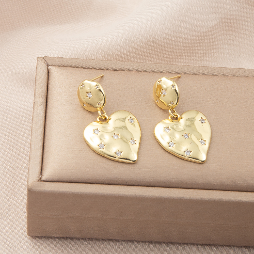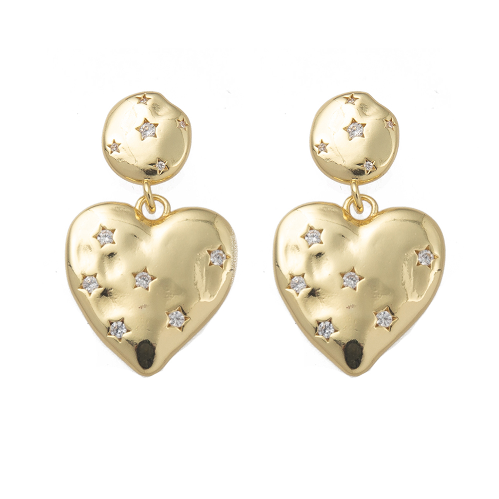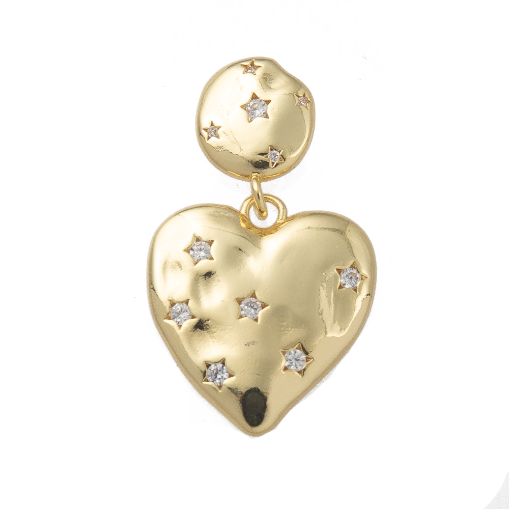 Boucles d'oreilles en laiton zircon cubique pavent, coeur, Placage de couleur d'or, pavé de micro zircon & pour femme, protéger l'environnement, sans nickel, plomb et cadmium, 20x2x34mm, Vendu par paire