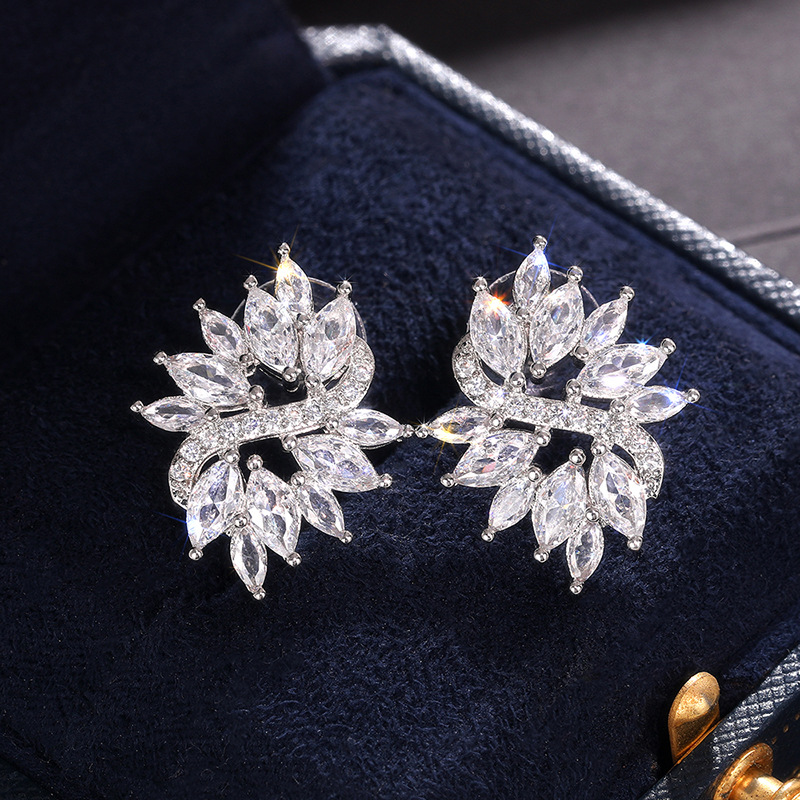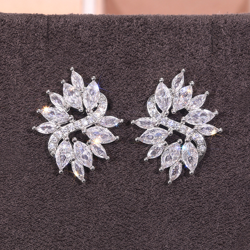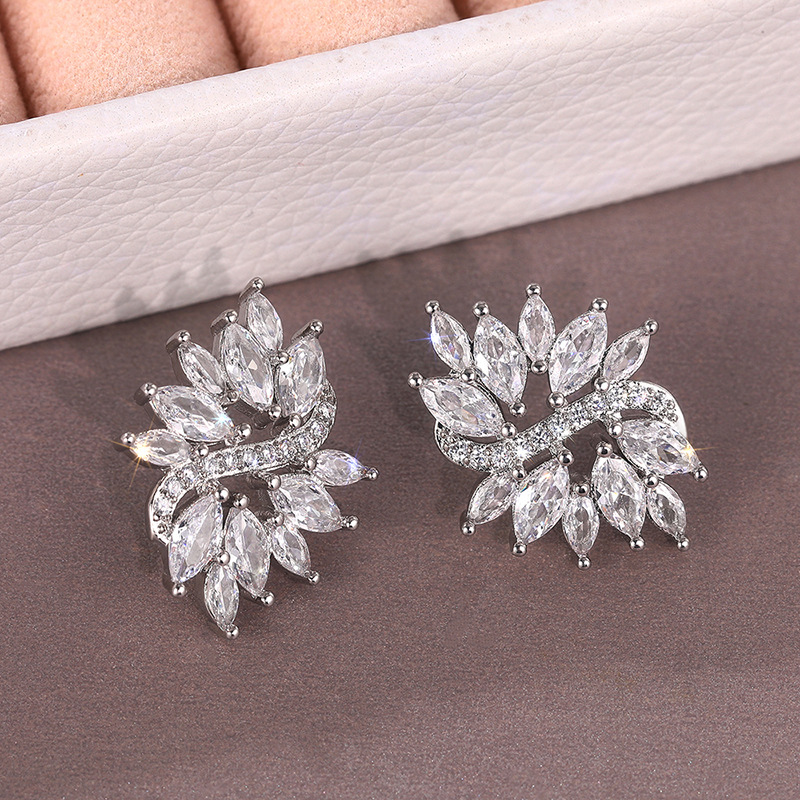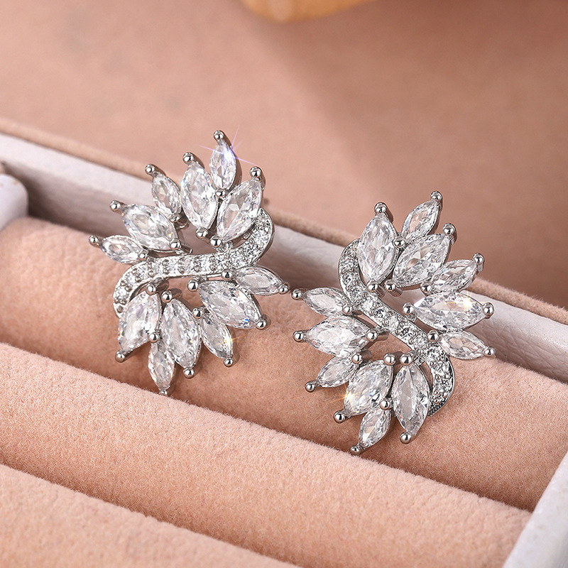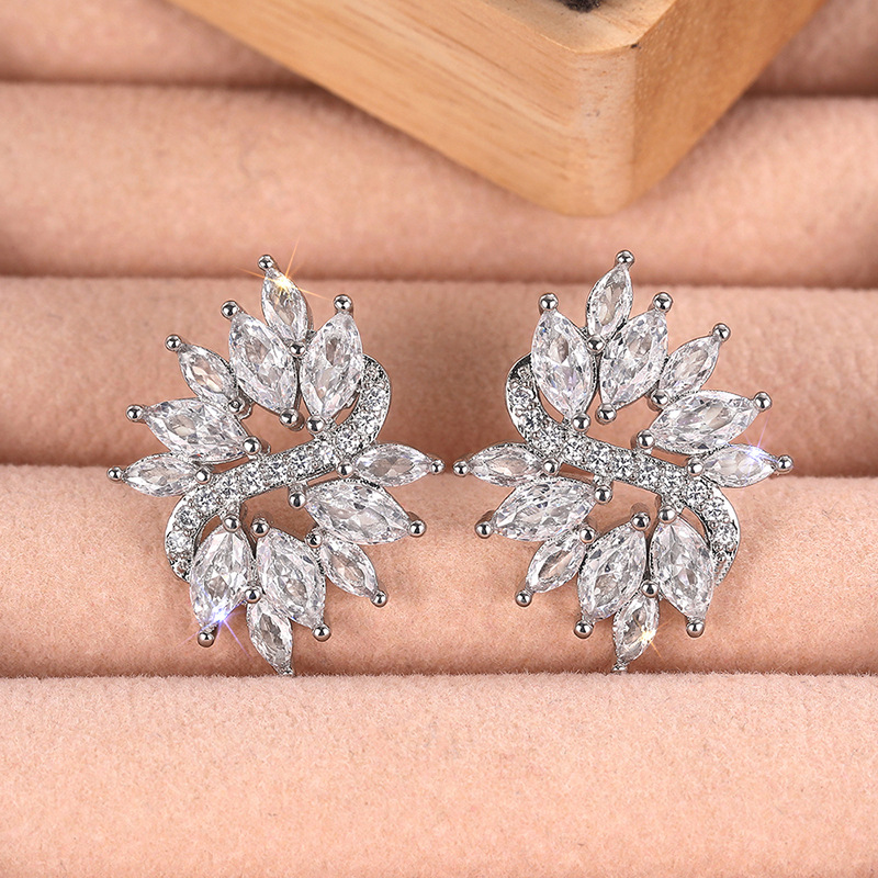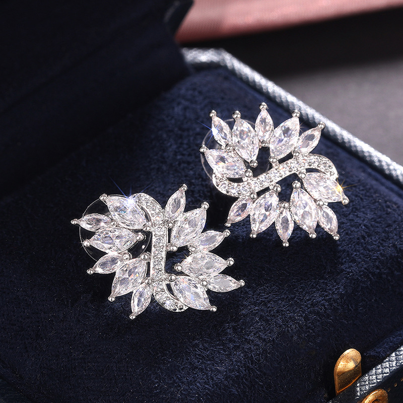 Boucles d'oreilles en laiton zircon cubique pavent, Placage, pavé de micro zircon & pour femme & creux, Vendu par paire