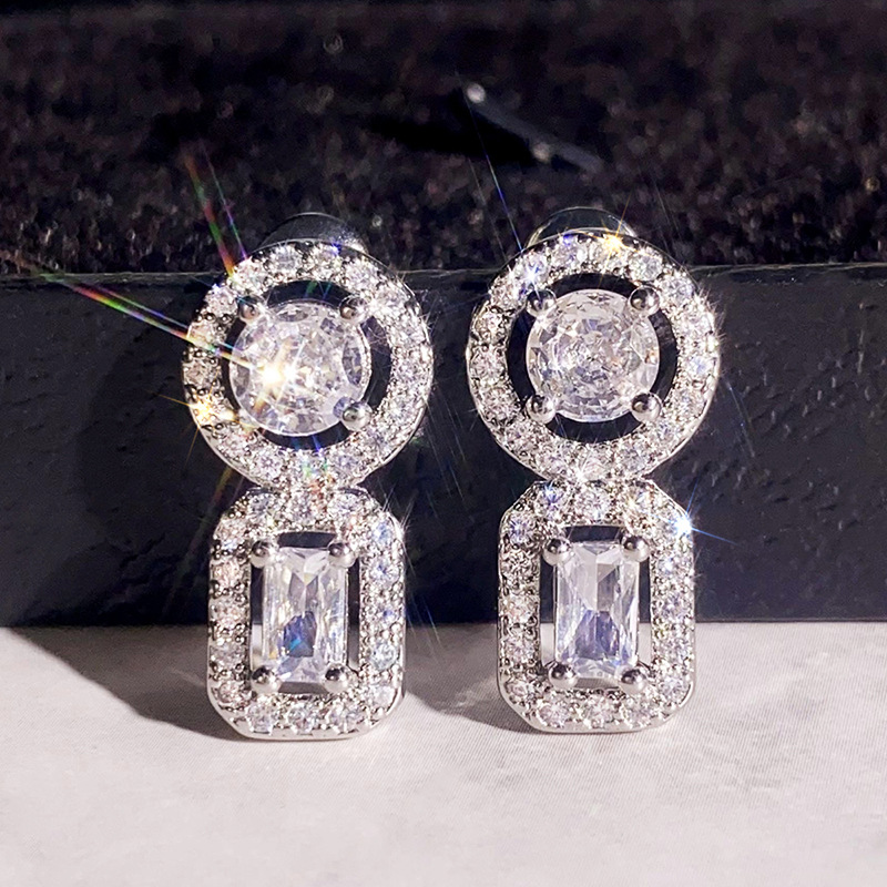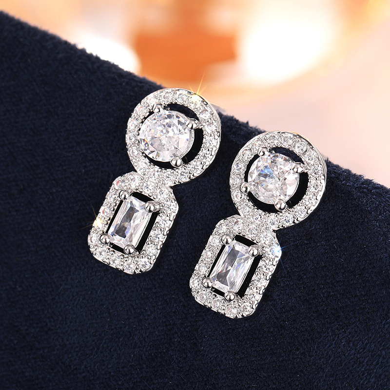 Boucles d'oreilles en laiton zircon cubique pavent, Placage, pavé de micro zircon & pour femme & creux, Vendu par paire