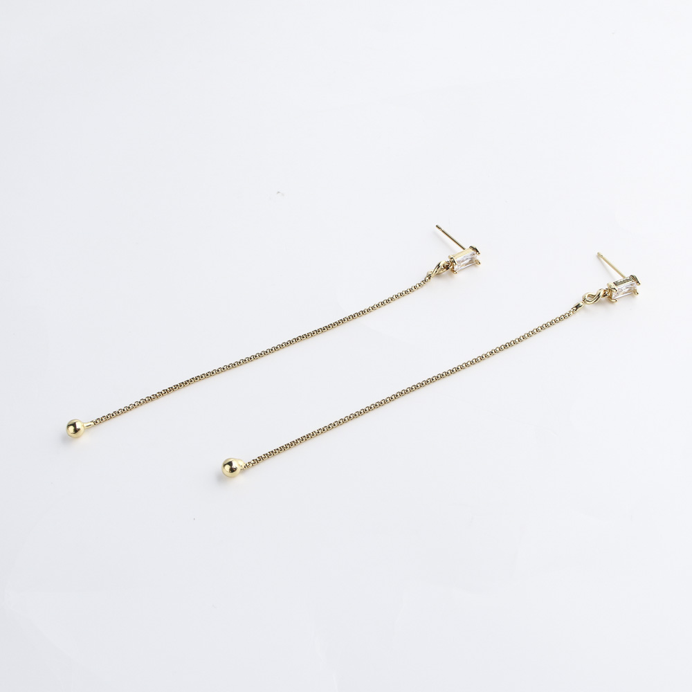 Boucles d'oreilles en laiton zircon cubique pavent, Placage, bijoux de mode & pavé de micro zircon & pour femme, doré, 99x15x4mm, Vendu par paire
