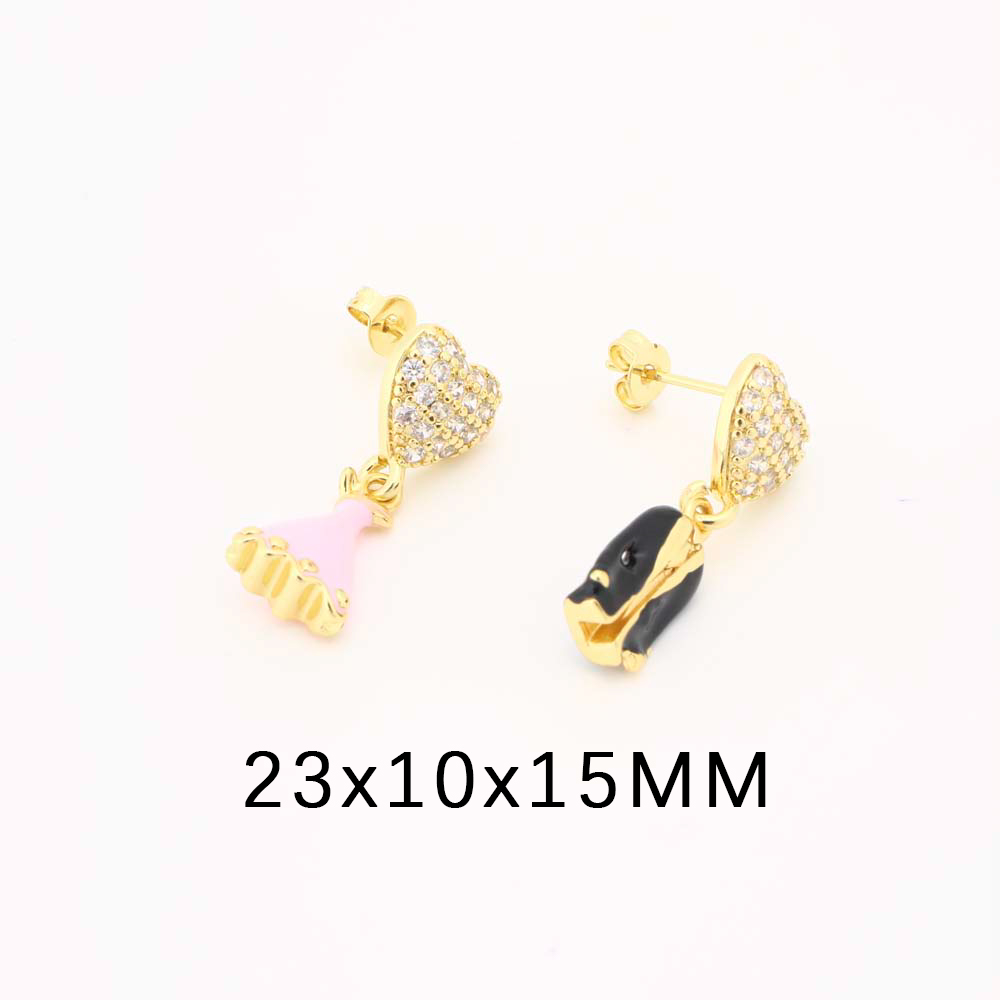 Boucles d'oreilles en laiton zircon cubique pavent, pavé de micro zircon & pour femme & émail, plus de couleurs à choisir, Vendu par paire