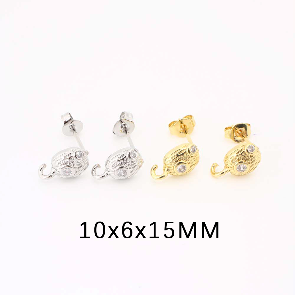 Boucles d'oreilles en laiton zircon cubique pavent, Placage, bijoux de mode & pavé de micro zircon & pour femme, plus de couleurs à choisir, protéger l'environnement, sans nickel, plomb et cadmium, 16x11mm, Vendu par paire