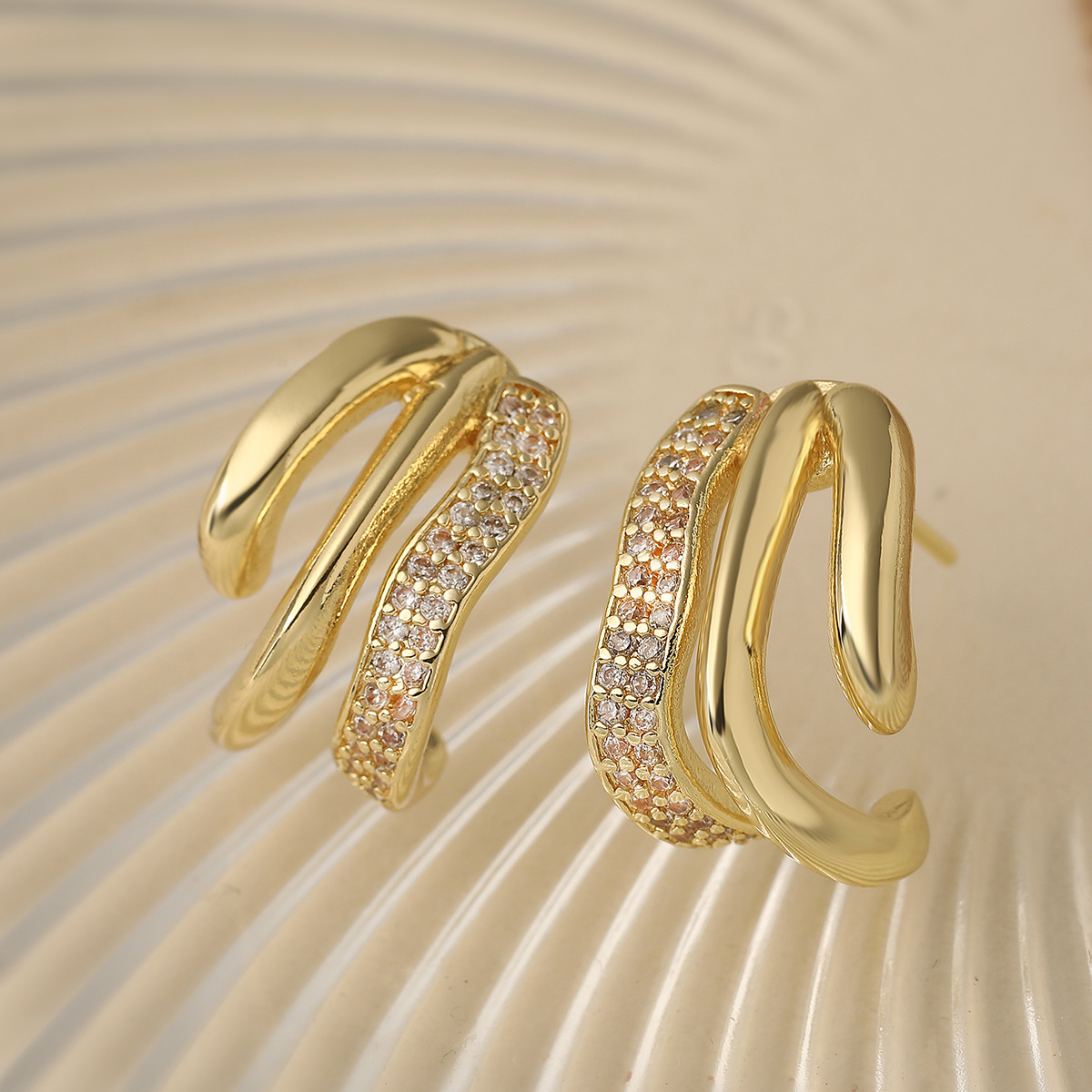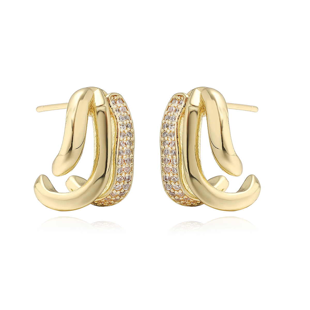 Boucles d'oreilles en laiton zircon cubique pavent, Placage, trois pièces & pour femme, doré, Vendu par fixé