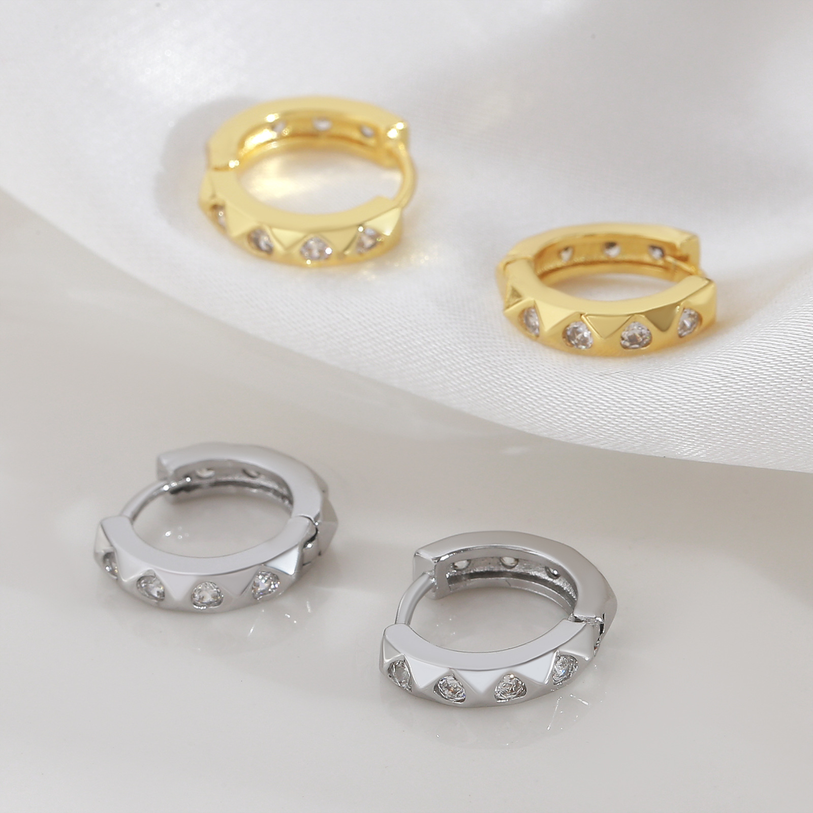 Boucles d'oreilles en laiton zircon cubique pavent, Placage, trois pièces & pour femme, doré, Vendu par fixé