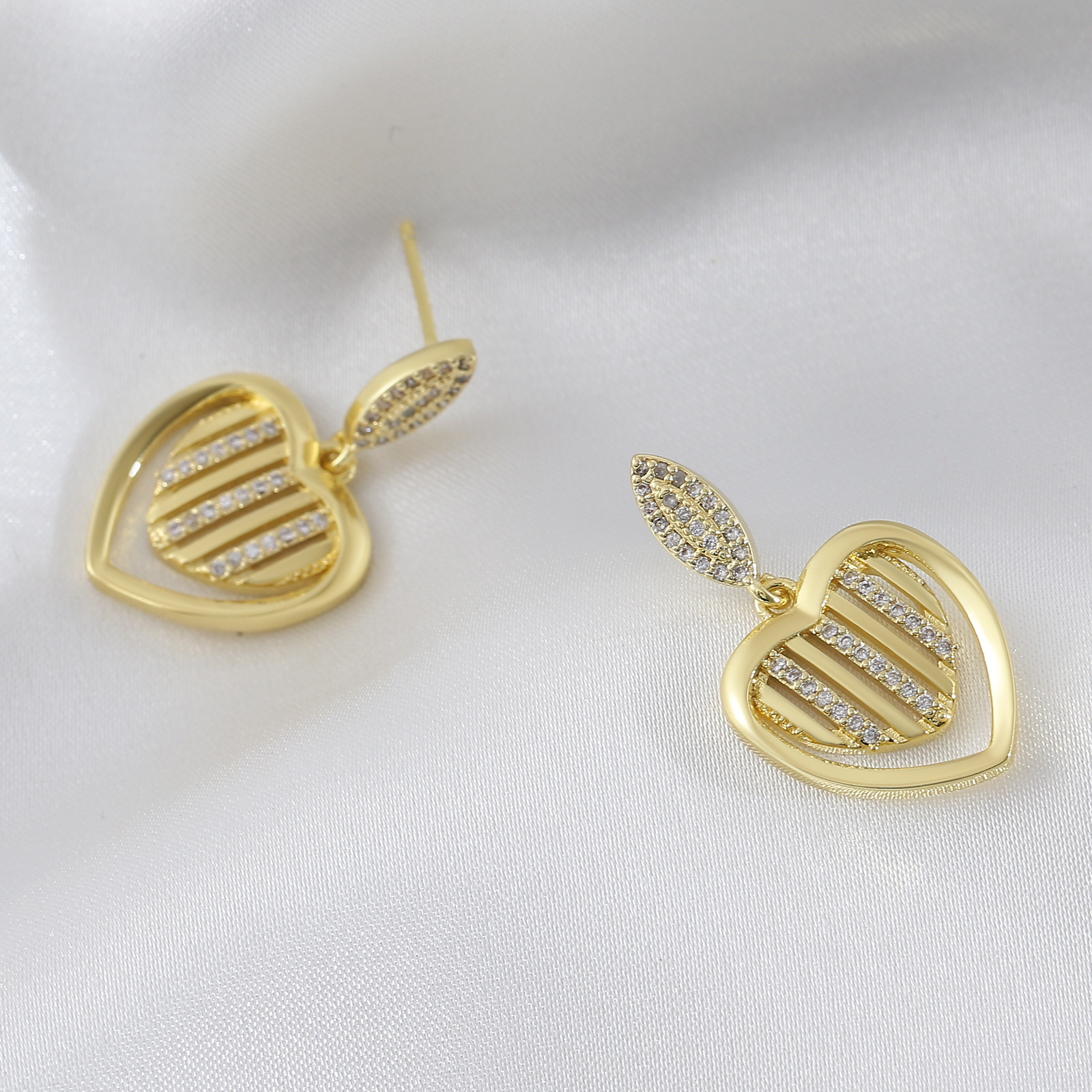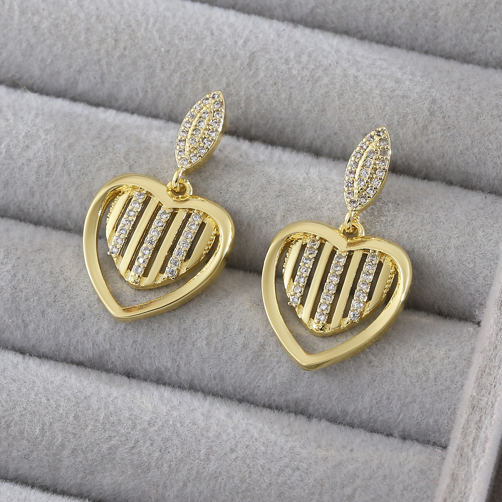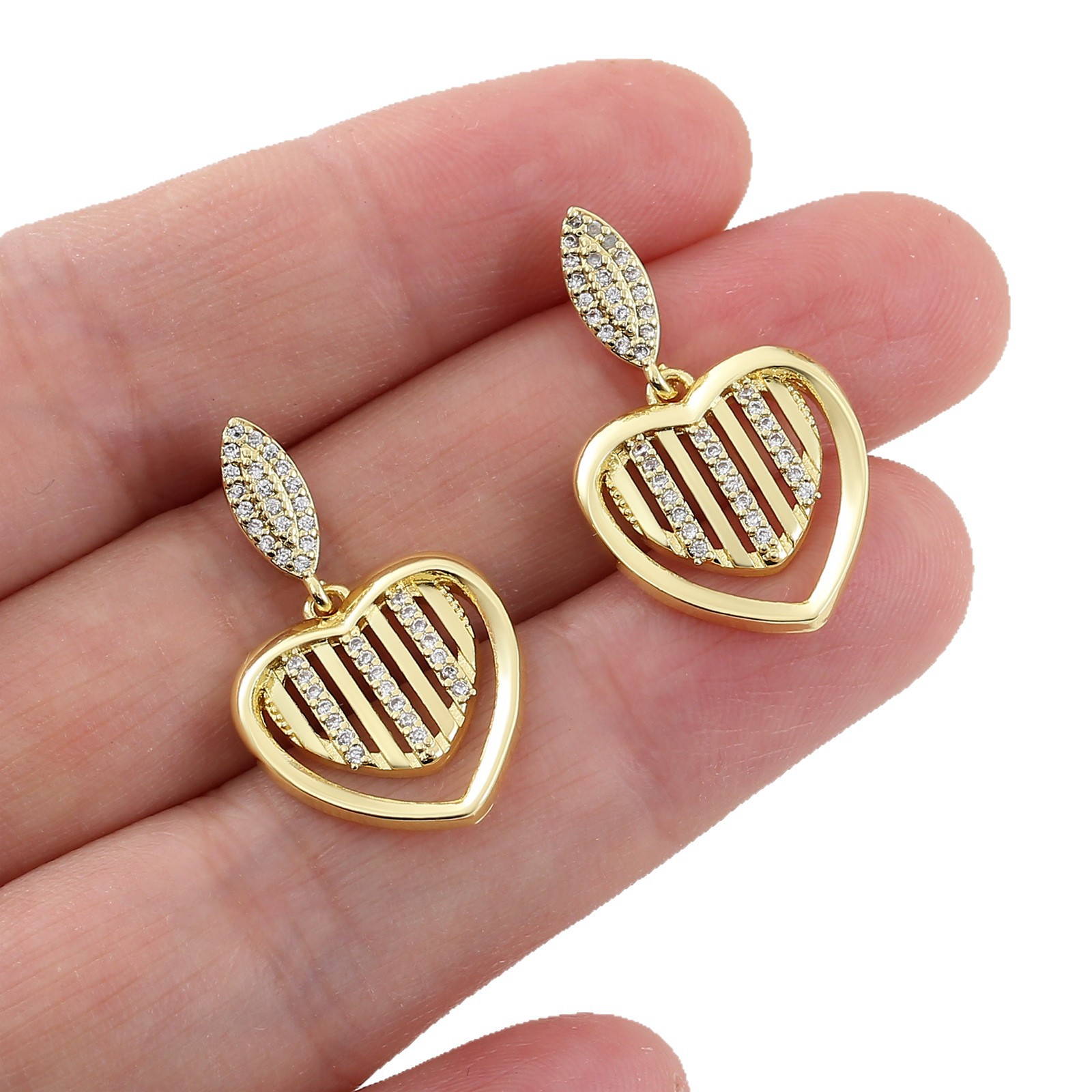 Boucles d'oreilles en laiton zircon cubique pavent, coeur, Placage de couleur d'or, pavé de micro zircon & pour femme & creux, Vendu par paire