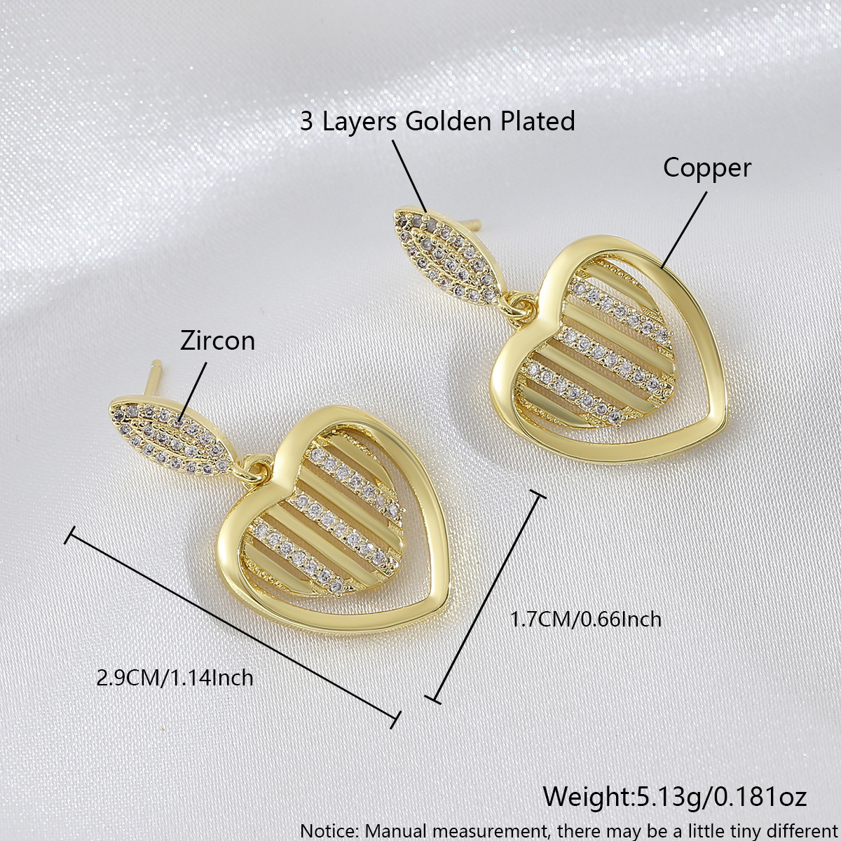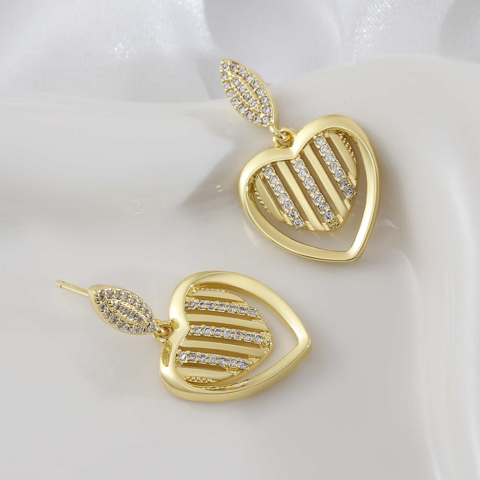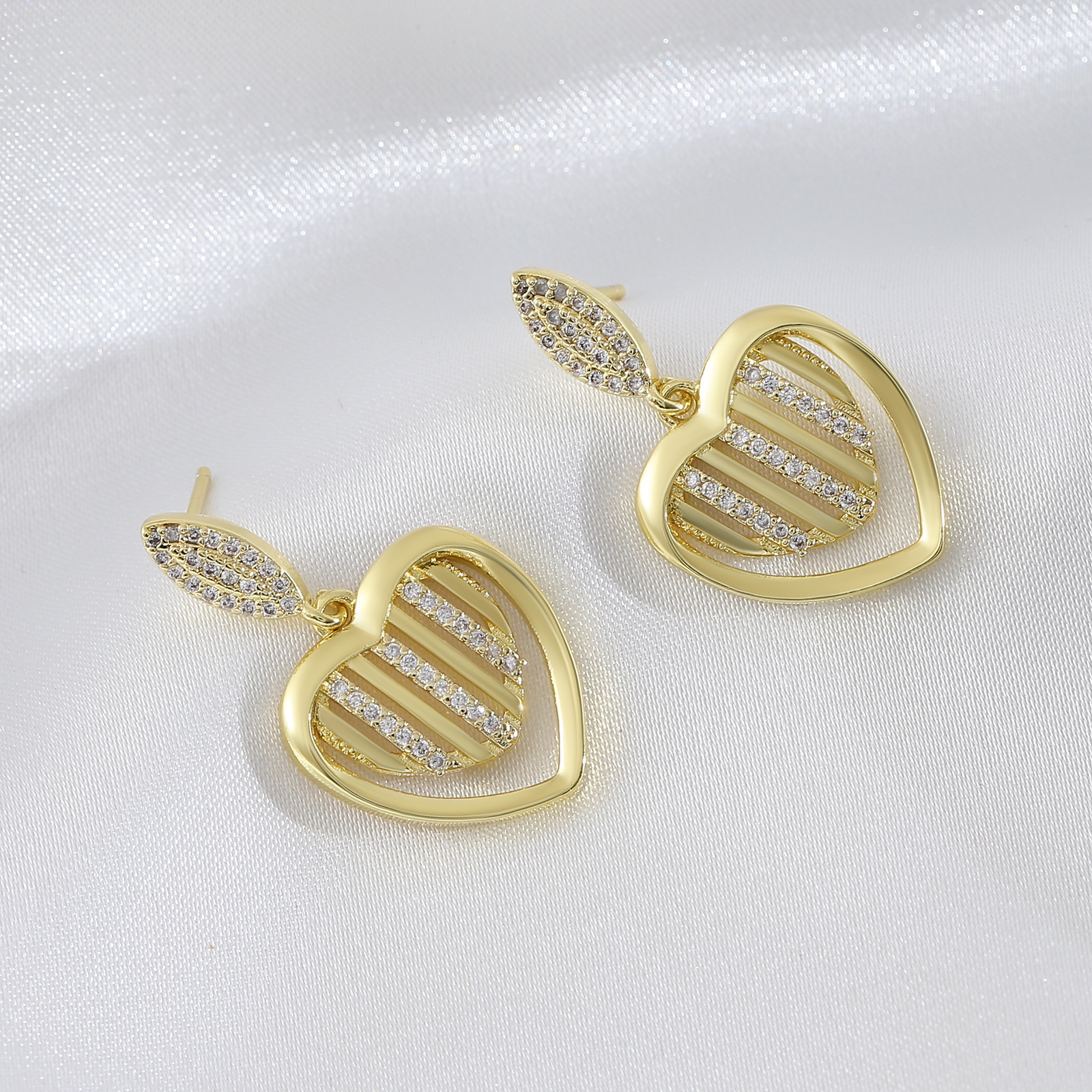 Boucles d'oreilles en laiton zircon cubique pavent, coeur, Placage de couleur d'or, pavé de micro zircon & pour femme & creux, Vendu par paire
