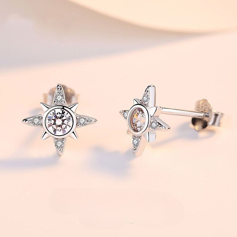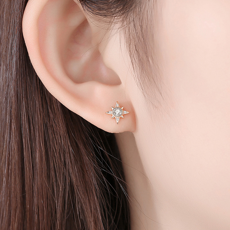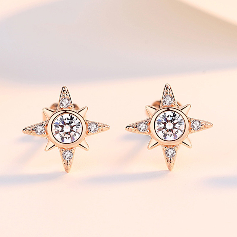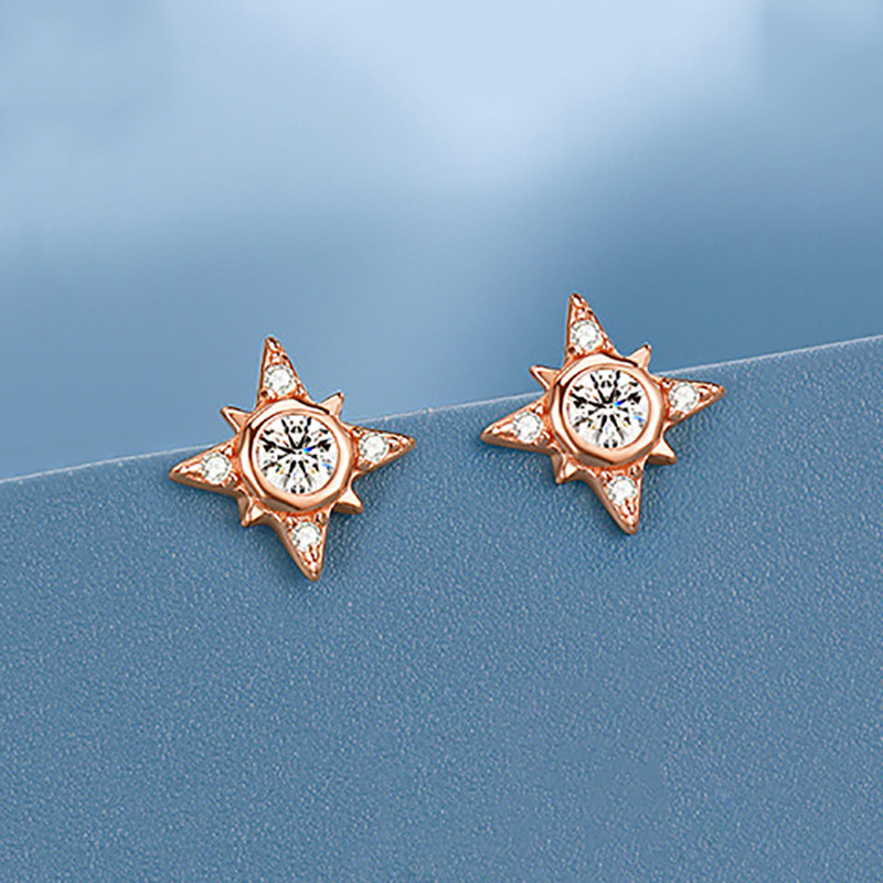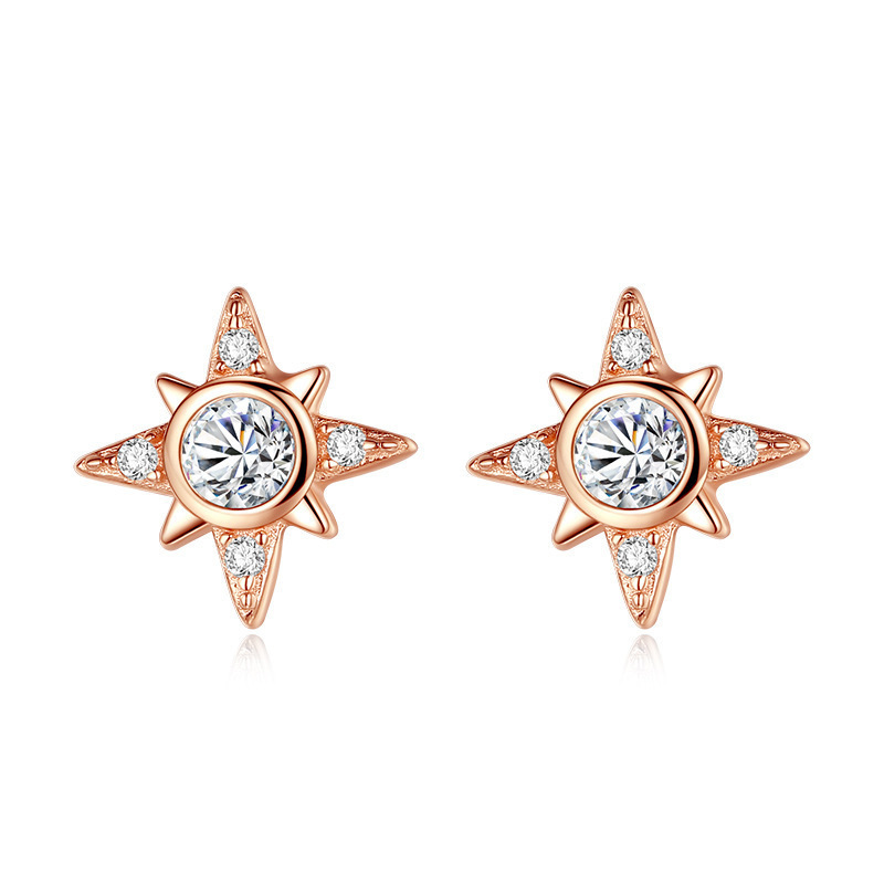 Boucles d'oreilles en laiton zircon cubique pavent, Huit Étoile, Placage, bijoux de mode & pavé de micro zircon, couleur or rose, 8x8mm, Vendu par paire