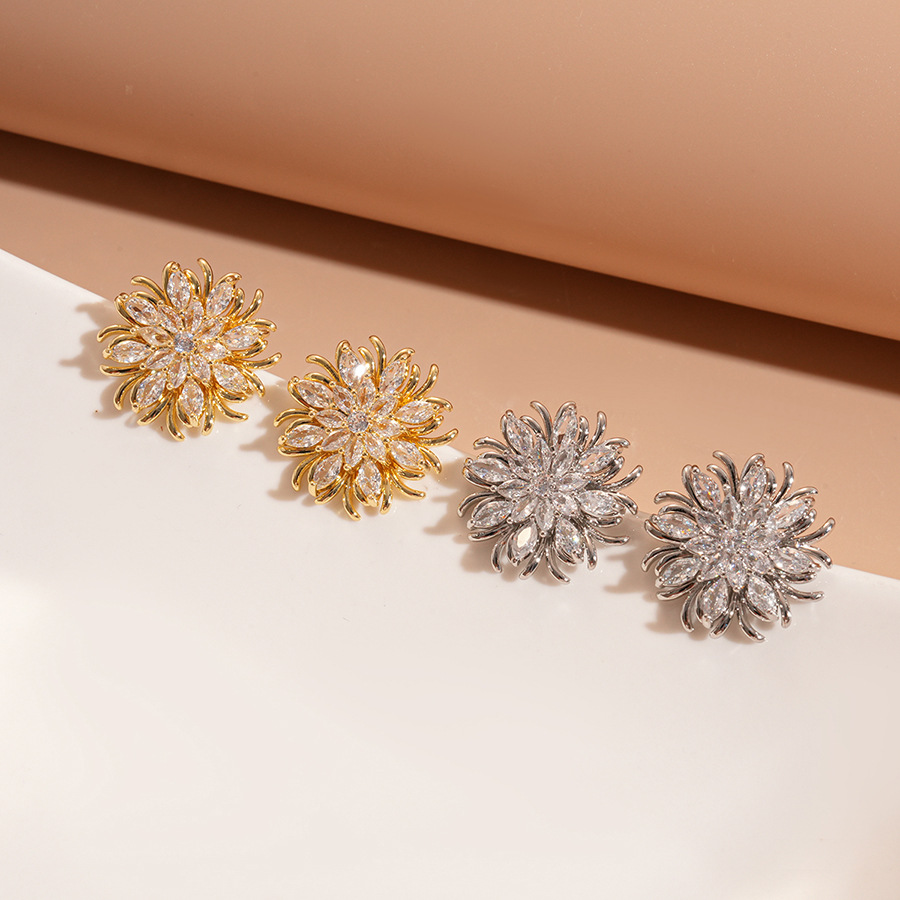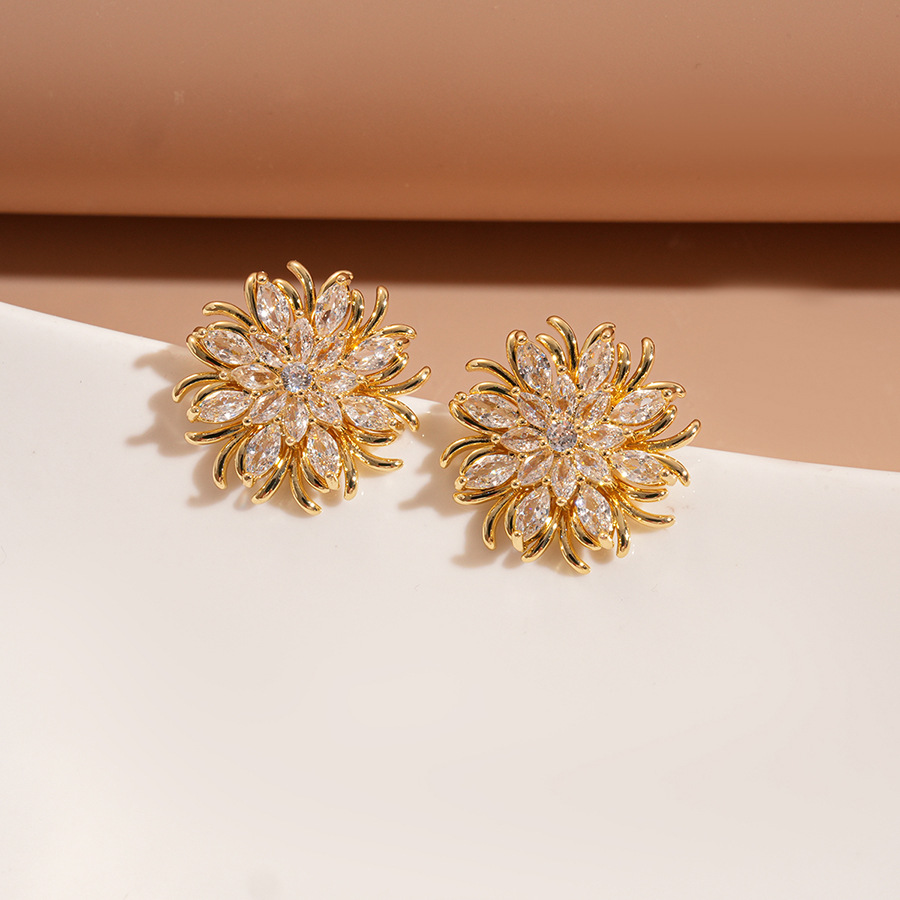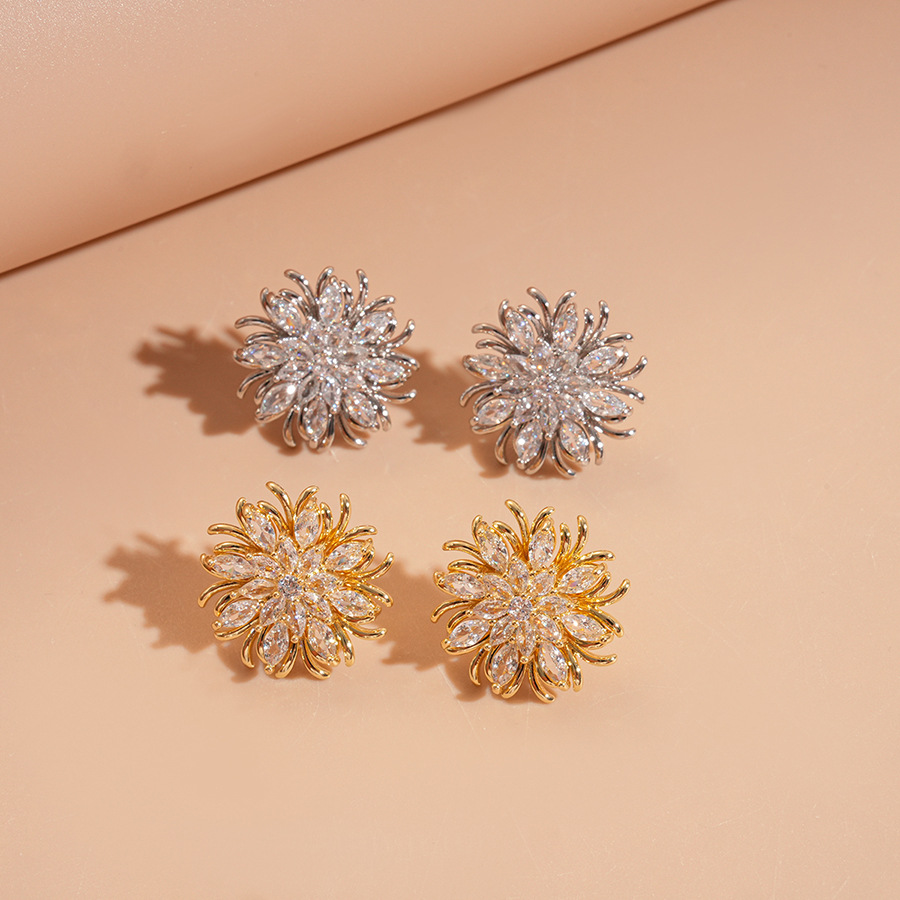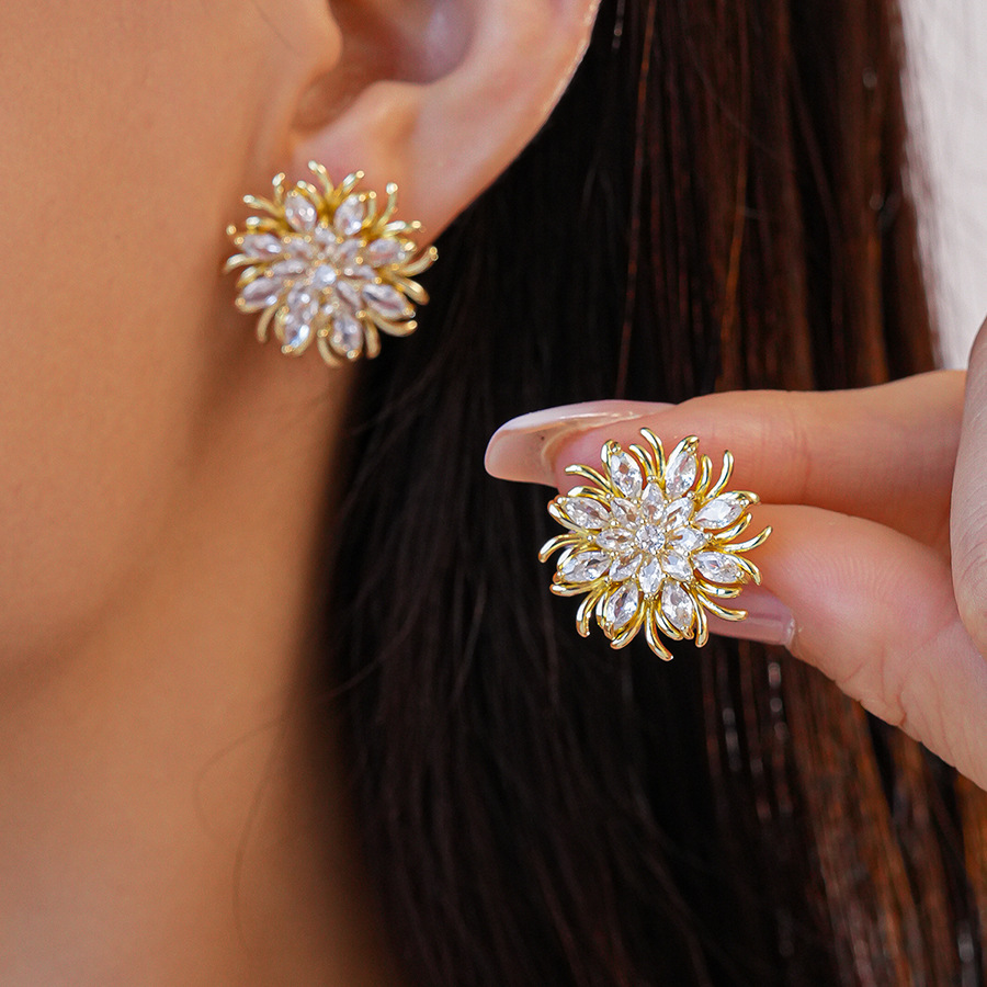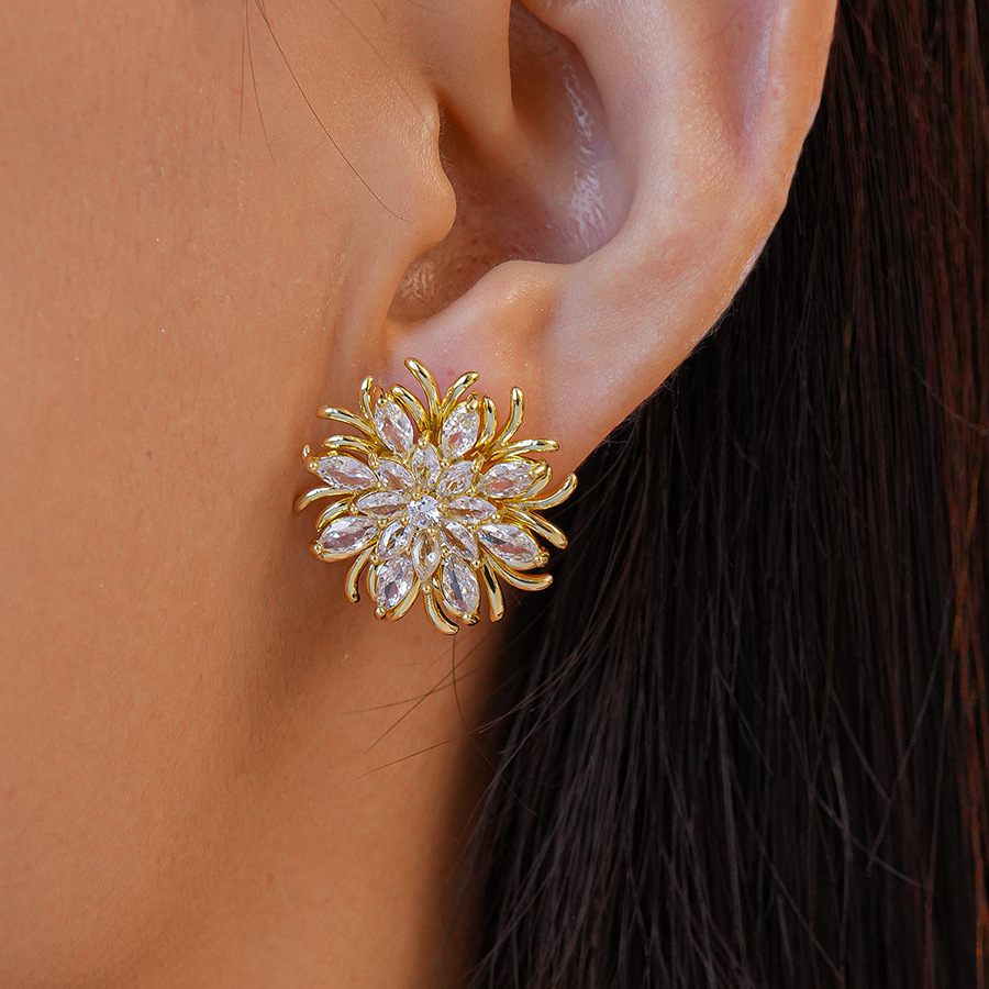 Boucles d'oreilles en laiton zircon cubique pavent, Placage, trois pièces & pour femme, doré, Vendu par fixé