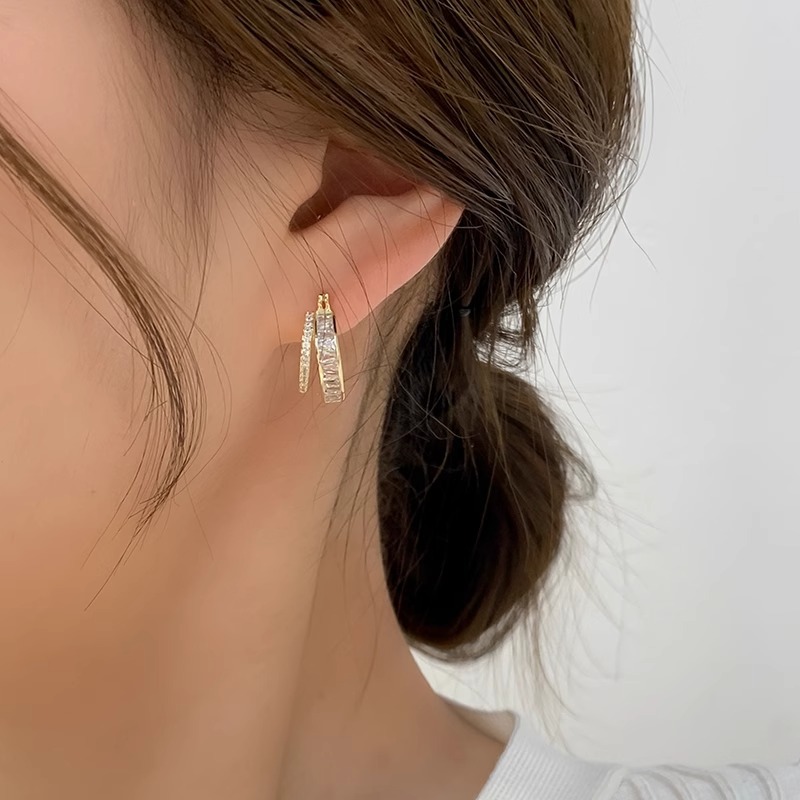 Boucles d'oreilles en laiton zircon cubique pavent, Placage, trois pièces & pour femme, doré, Vendu par fixé