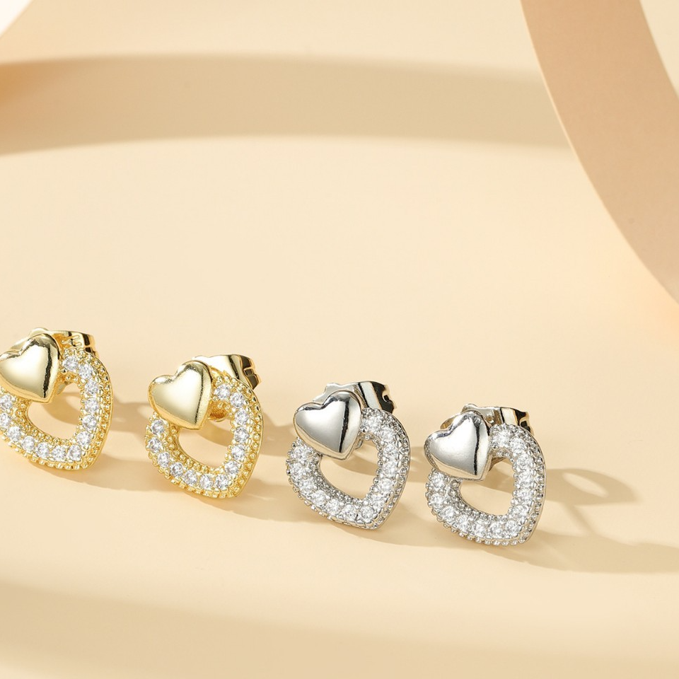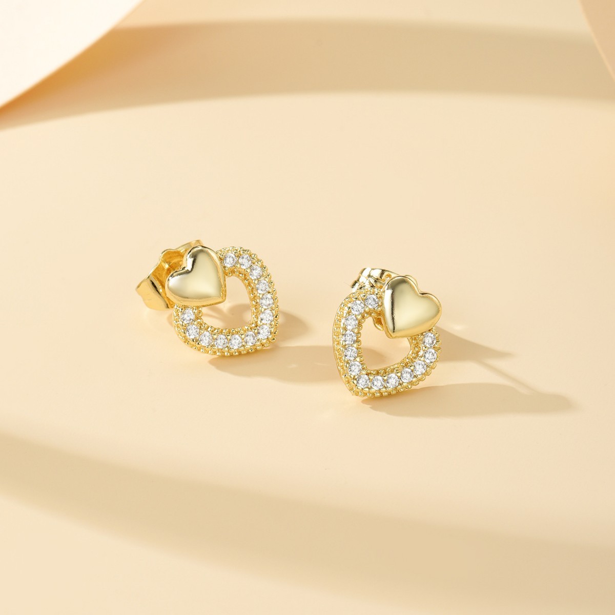 Boucles d'oreilles en laiton zircon cubique pavent, Placage, trois pièces & pour femme, doré, Vendu par fixé
