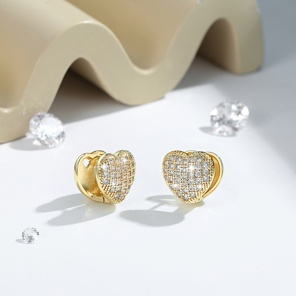 Boucles d'oreilles en laiton zircon cubique pavent, Placage, trois pièces & pour femme, doré, Vendu par fixé