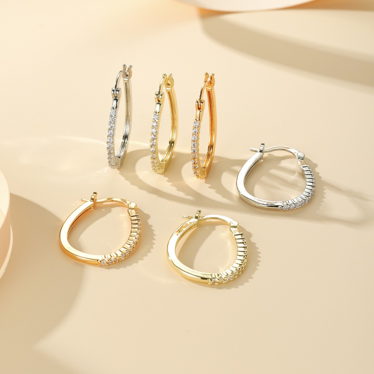 Boucles d'oreilles en laiton zircon cubique pavent, Placage, trois pièces & pour femme, doré, Vendu par fixé