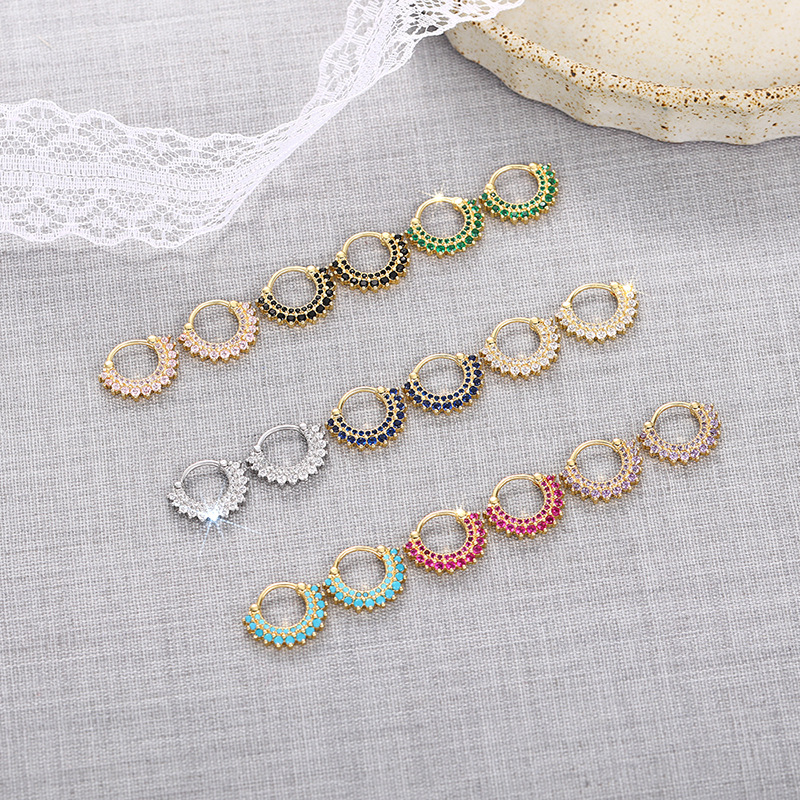 Boucles d'oreilles en laiton zircon cubique pavent, Placage, trois pièces & pour femme, doré, Vendu par fixé