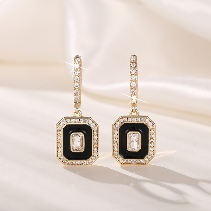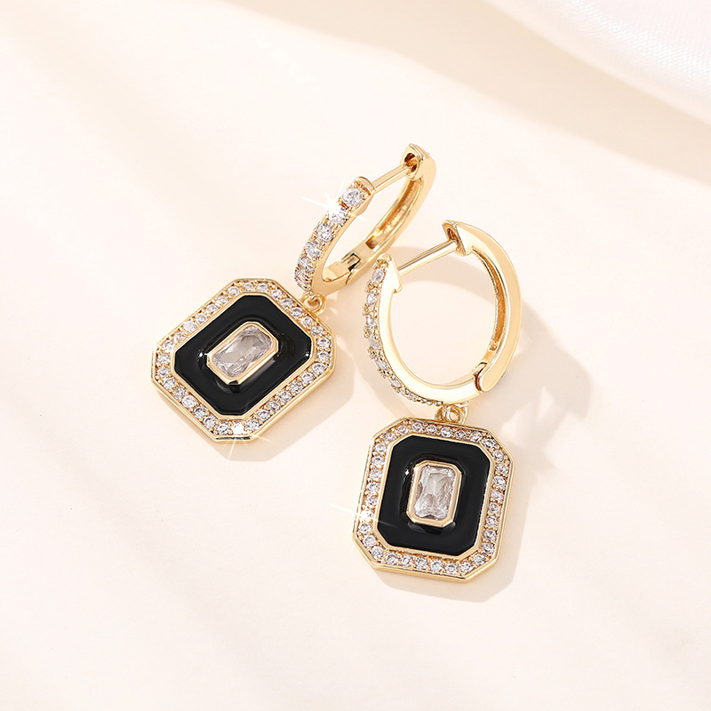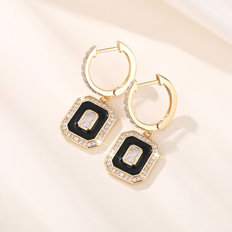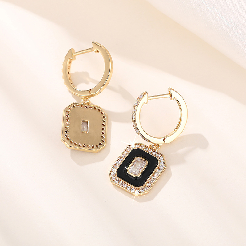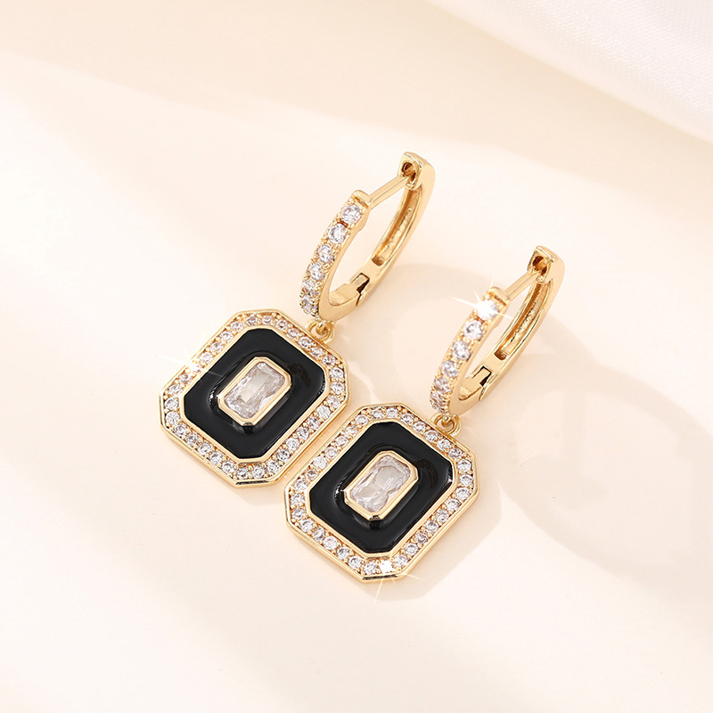 Boucles d'oreilles en laiton zircon cubique pavent, Placage, pavé de micro zircon & pour femme & émail, Vendu par paire