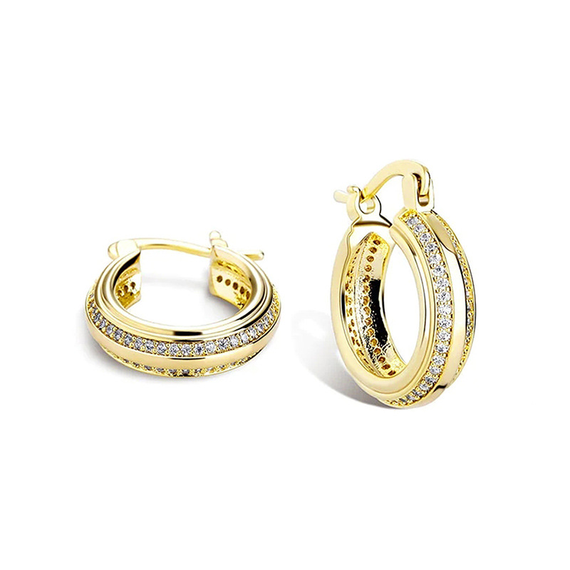 Boucles d'oreilles en laiton zircon cubique pavent, Placage, trois pièces & pour femme, doré, Vendu par fixé