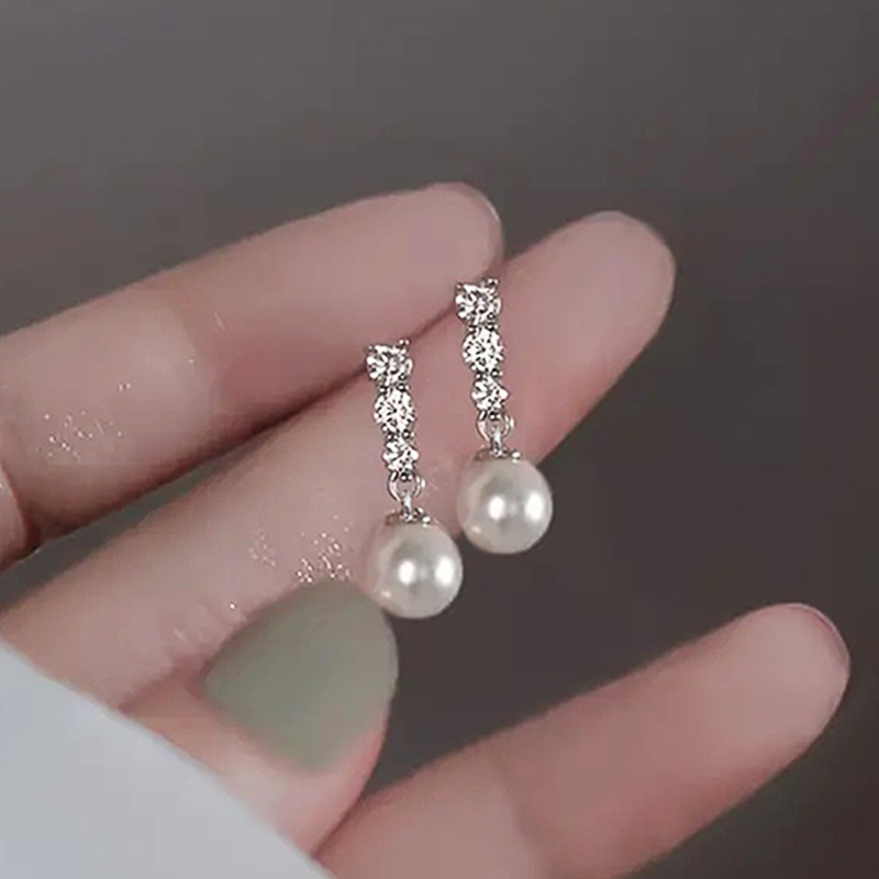 Boucles d'oreilles en laiton zircon cubique pavent, avec perle de plastique, Placage, bijoux de mode & pavé de micro zircon & pour femme, Vendu par paire