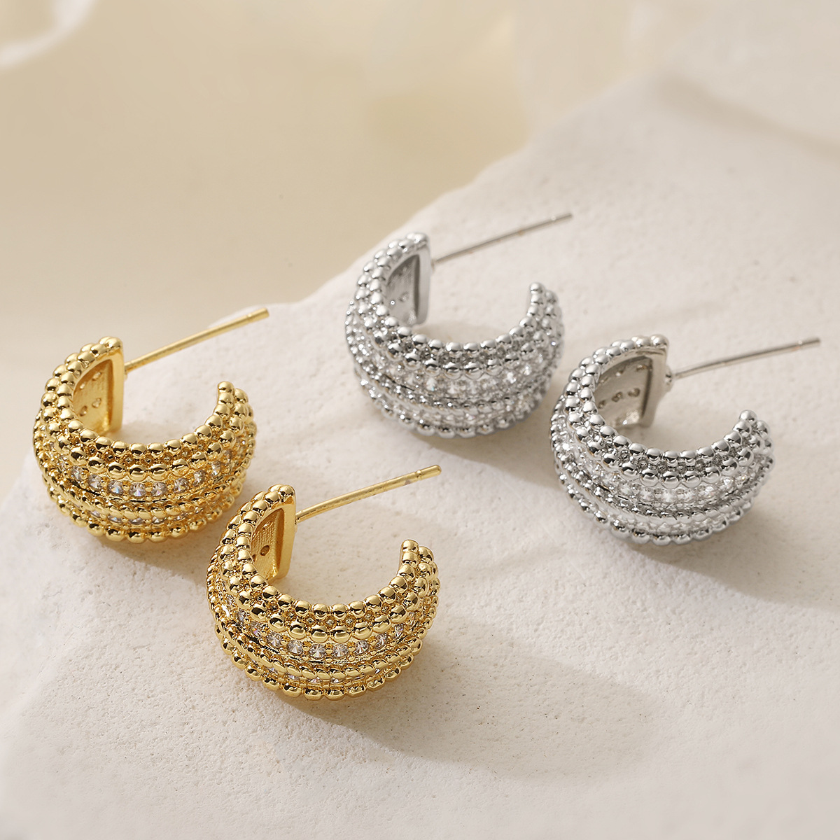 Boucles d'oreilles en laiton zircon cubique pavent, Placage, trois pièces & pour femme, doré, Vendu par fixé