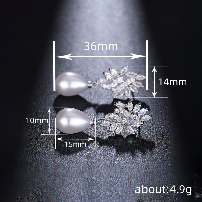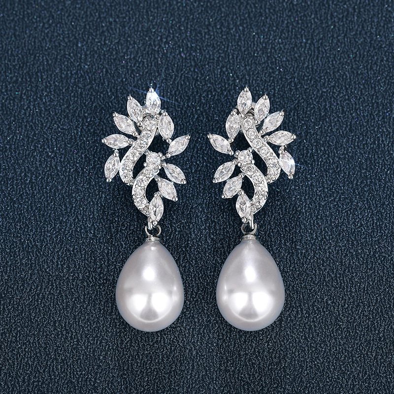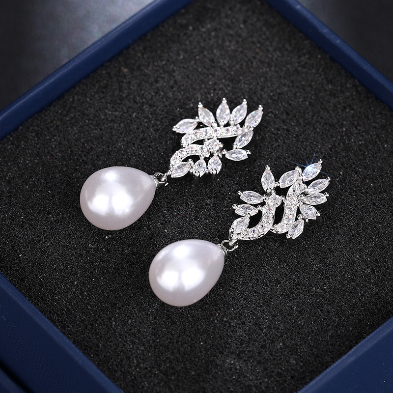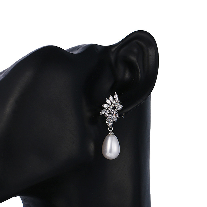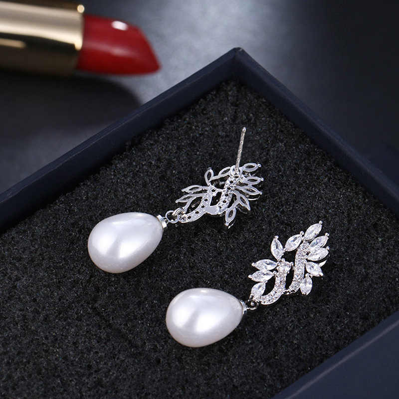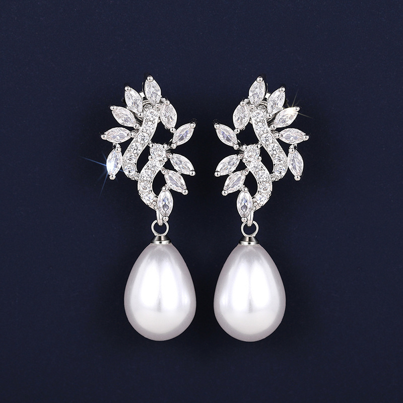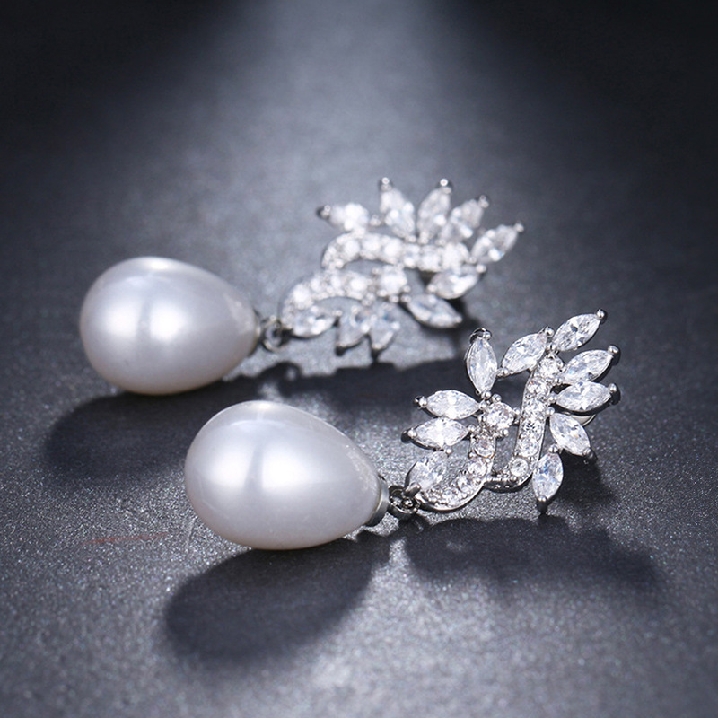 Boucles d'oreilles en laiton zircon cubique pavent, alliage de zinc, avec perle de plastique, Placage, pavé de micro zircon & pour femme & creux, Vendu par paire