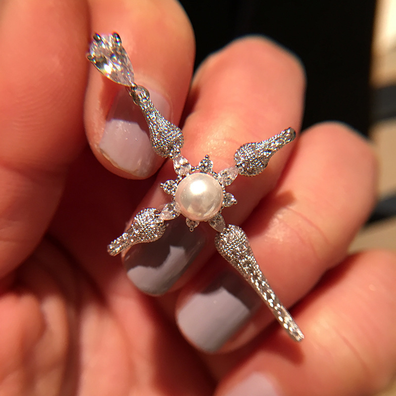 Boucles d'oreilles en laiton zircon cubique pavent, avec perle de plastique, croix, Placage, bijoux de mode & pavé de micro zircon & pour femme, Vendu par paire