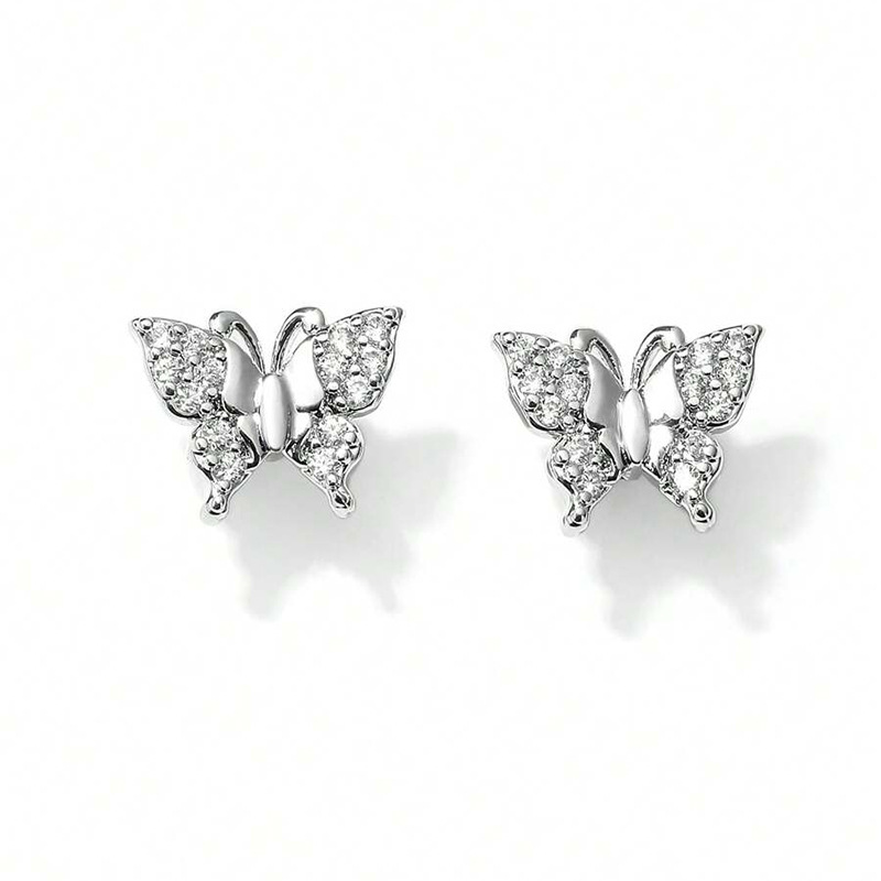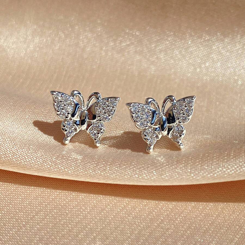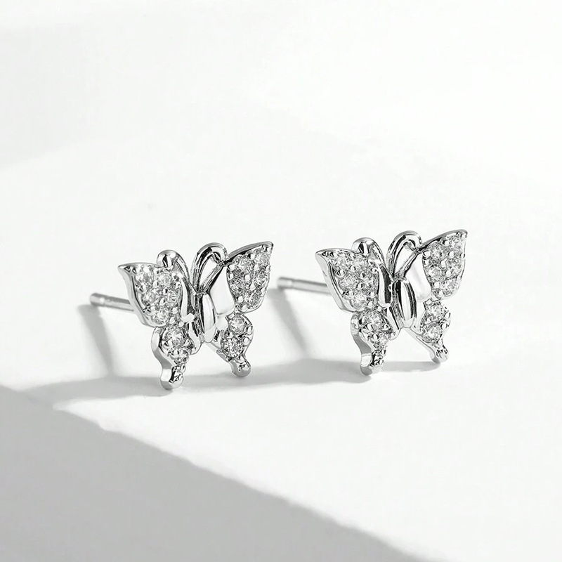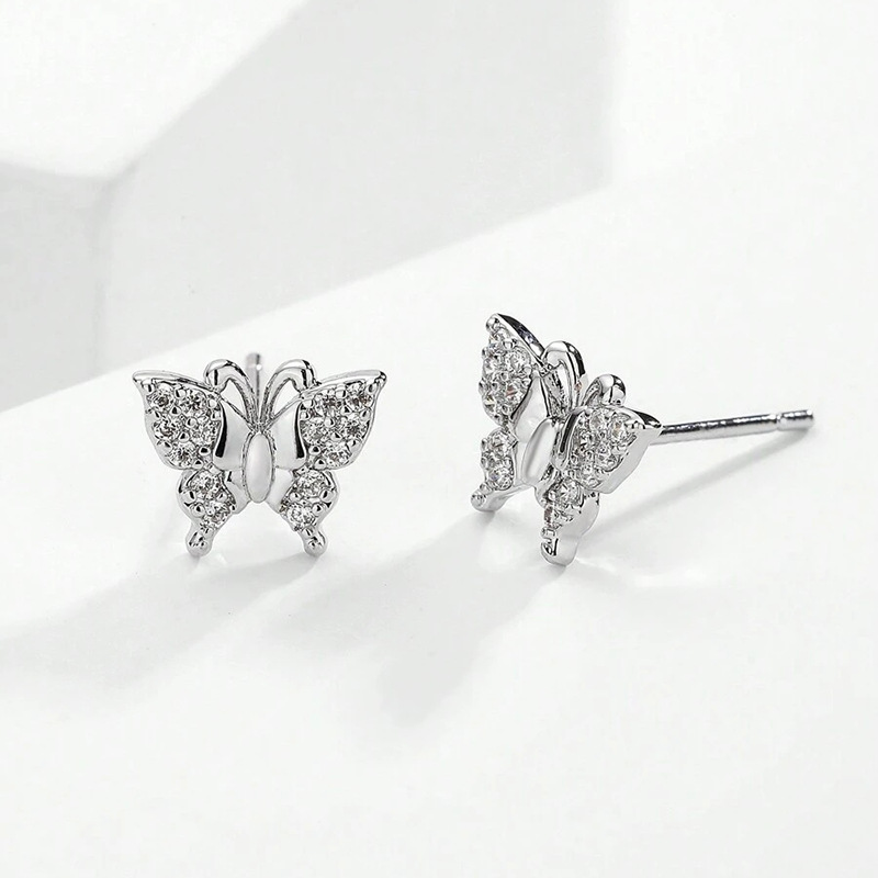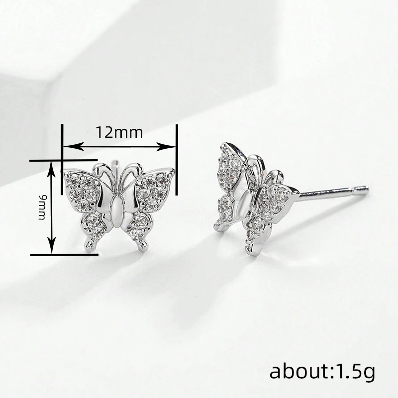 Boucles d'oreilles en laiton zircon cubique pavent, papillon, Placage, bijoux de mode & pavé de micro zircon & pour femme, Vendu par paire