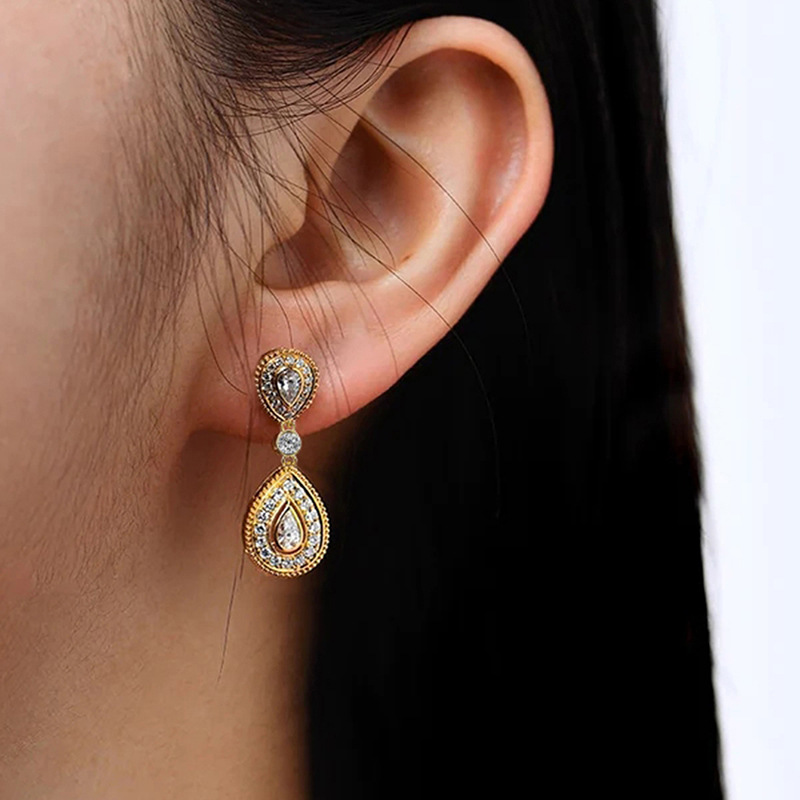 Boucles d'oreilles en laiton zircon cubique pavent, larme, Placage, bijoux de mode & pavé de micro zircon & pour femme, plus de couleurs à choisir, Vendu par paire