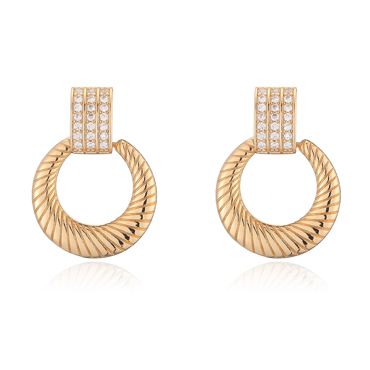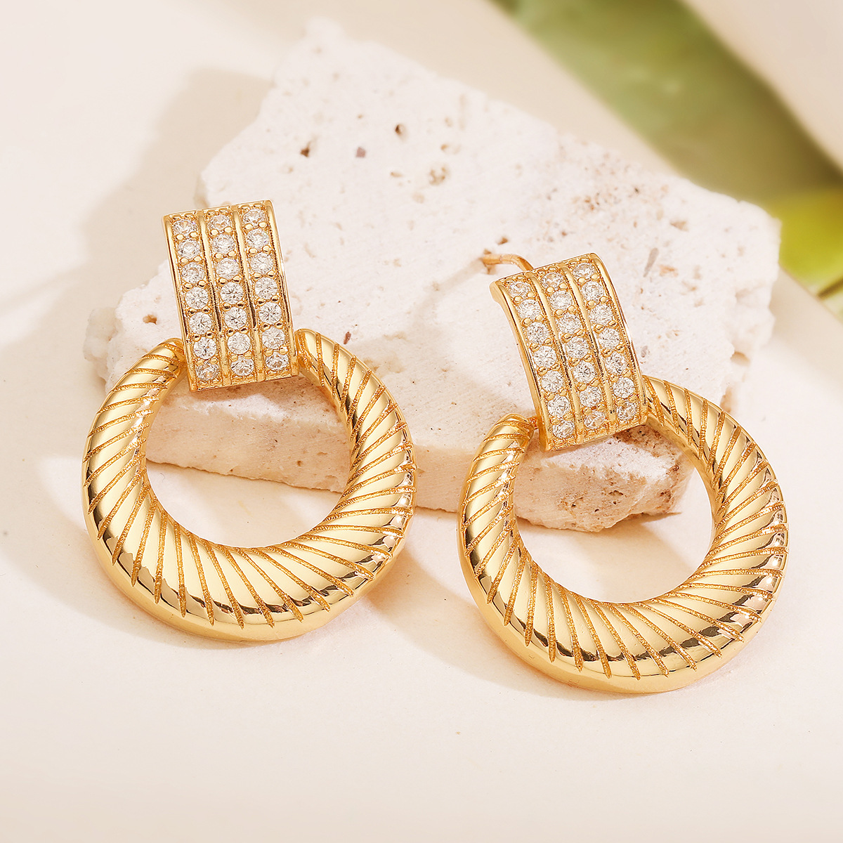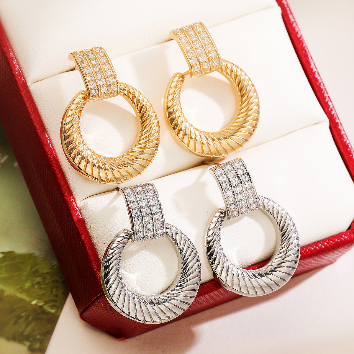Boucles d'oreilles en laiton zircon cubique pavent, Rond, Placage, pavé de micro zircon & pour femme & creux, plus de couleurs à choisir, Vendu par paire