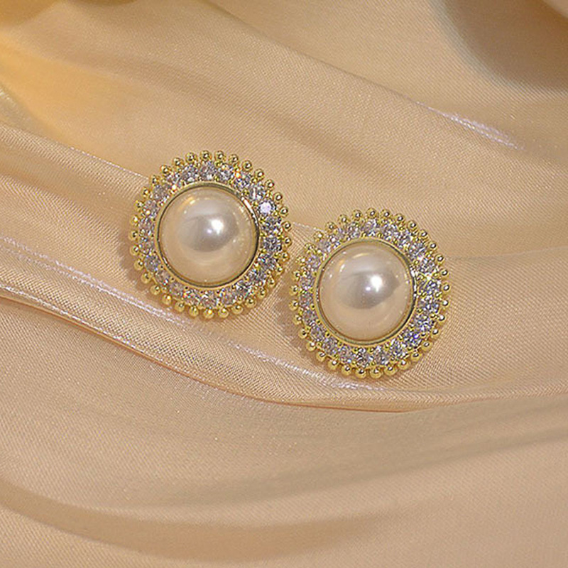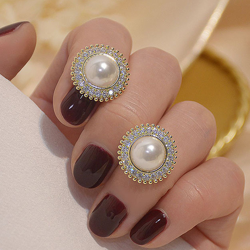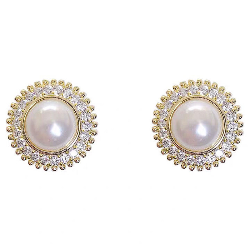 Boucles d'oreilles en laiton zircon cubique pavent, avec perle de plastique, fleur, Placage, bijoux de mode & pavé de micro zircon & pour femme, Vendu par paire