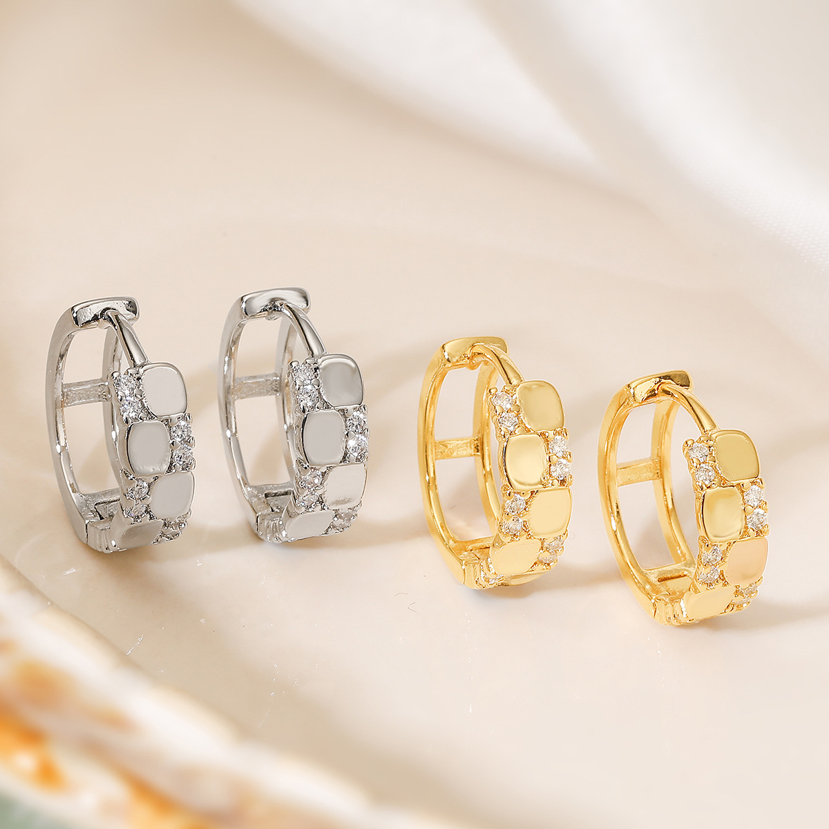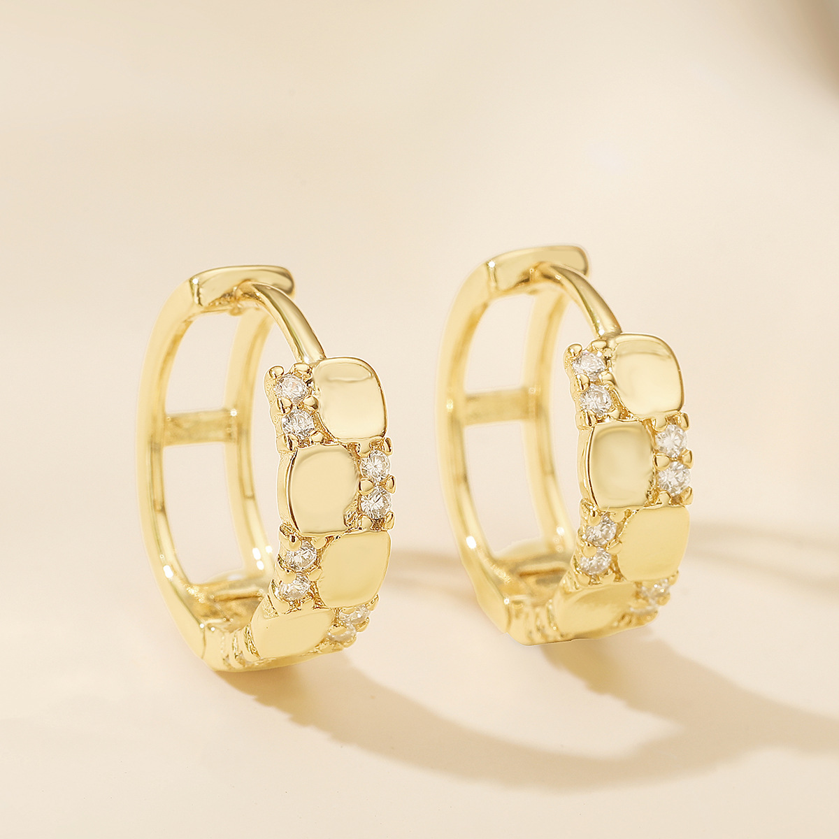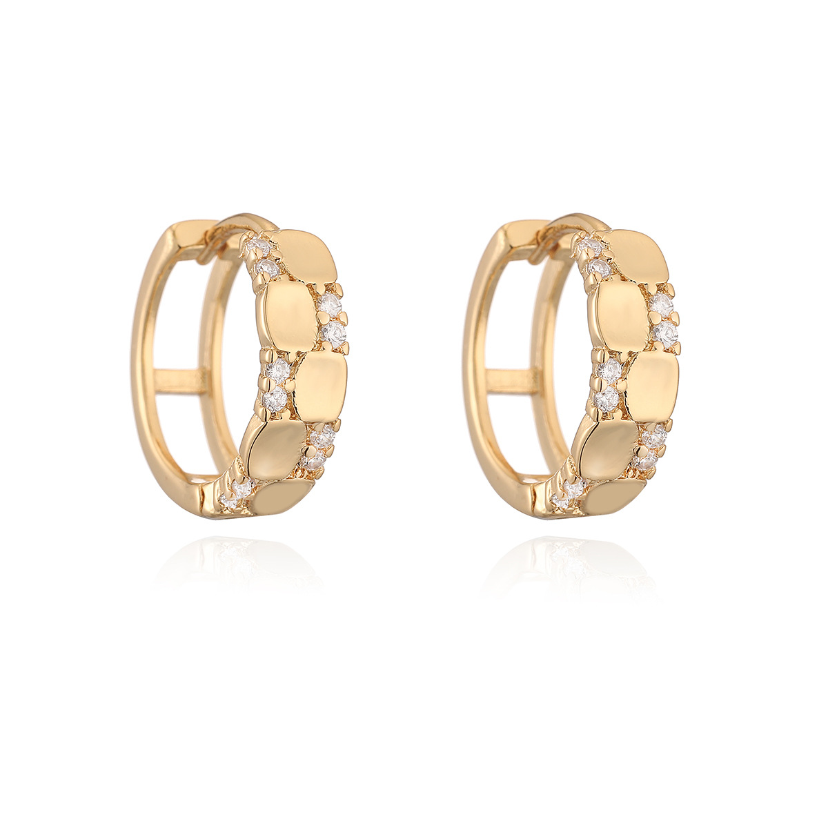 Boucles d'oreilles en laiton zircon cubique pavent, Placage, trois pièces & pour femme, doré, Vendu par fixé