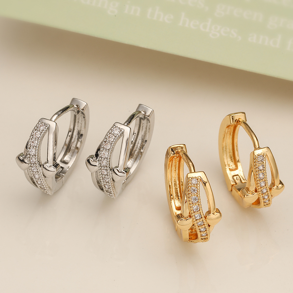 Boucles d'oreilles en laiton zircon cubique pavent, Placage, pavé de micro zircon & pour femme & creux, plus de couleurs à choisir, Vendu par paire