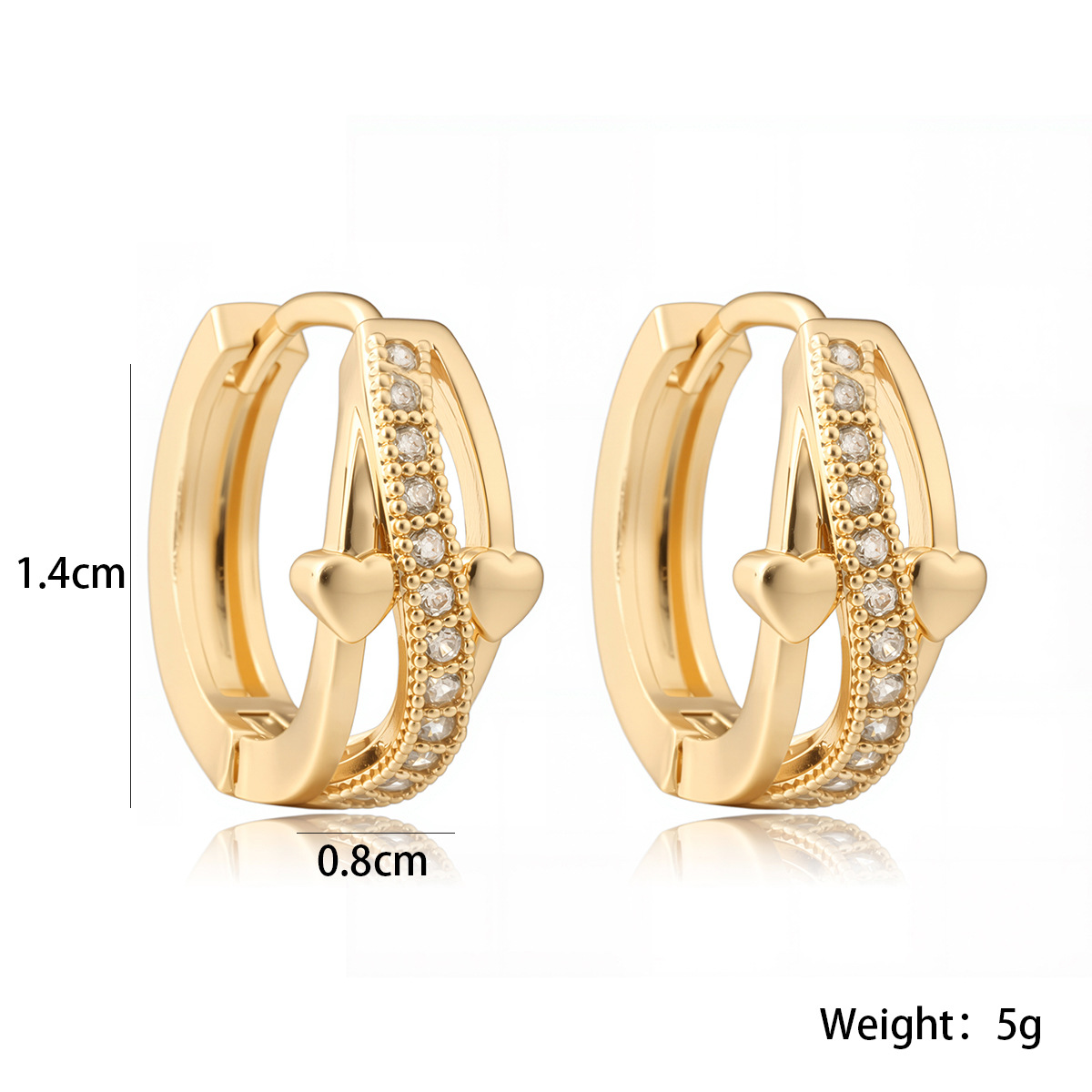 Boucles d'oreilles en laiton zircon cubique pavent, Placage, trois pièces & pour femme, doré, Vendu par fixé