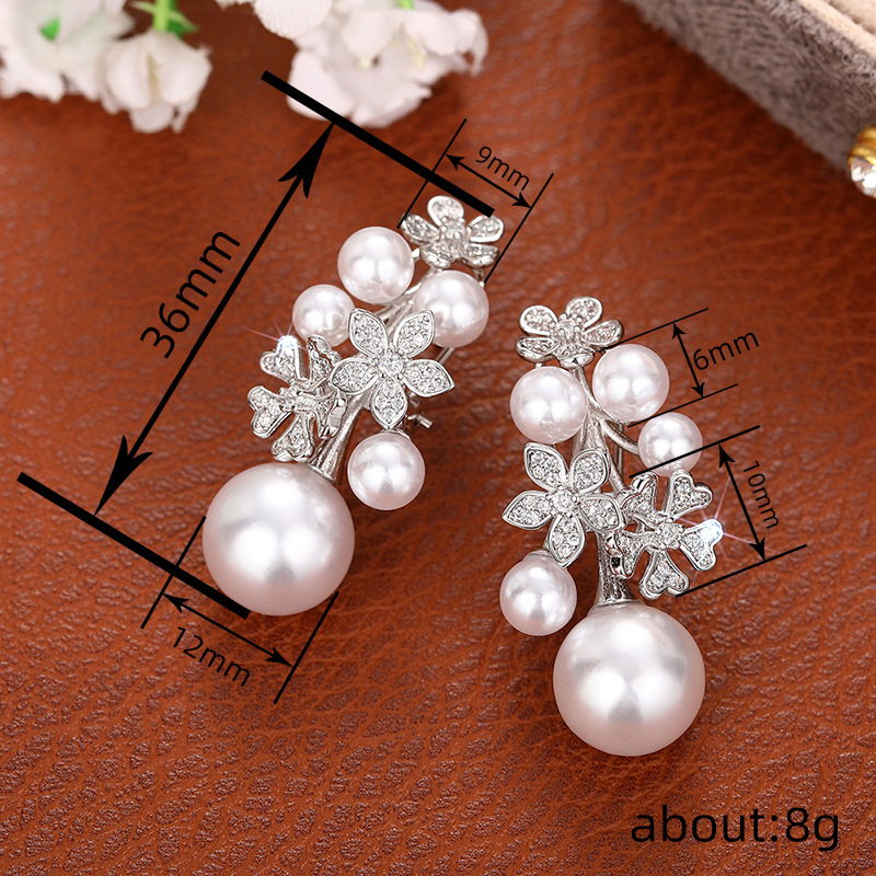 Boucles d'oreilles en laiton zircon cubique pavent, avec perle de plastique, Placage, pavé de micro zircon & pour femme & creux, Vendu par paire
