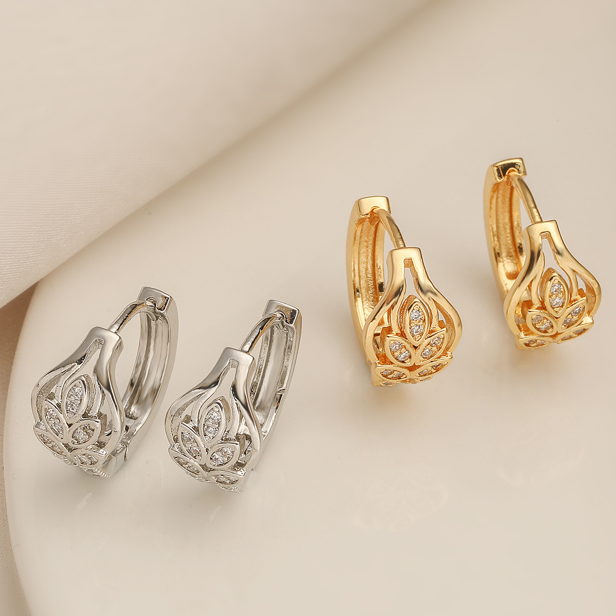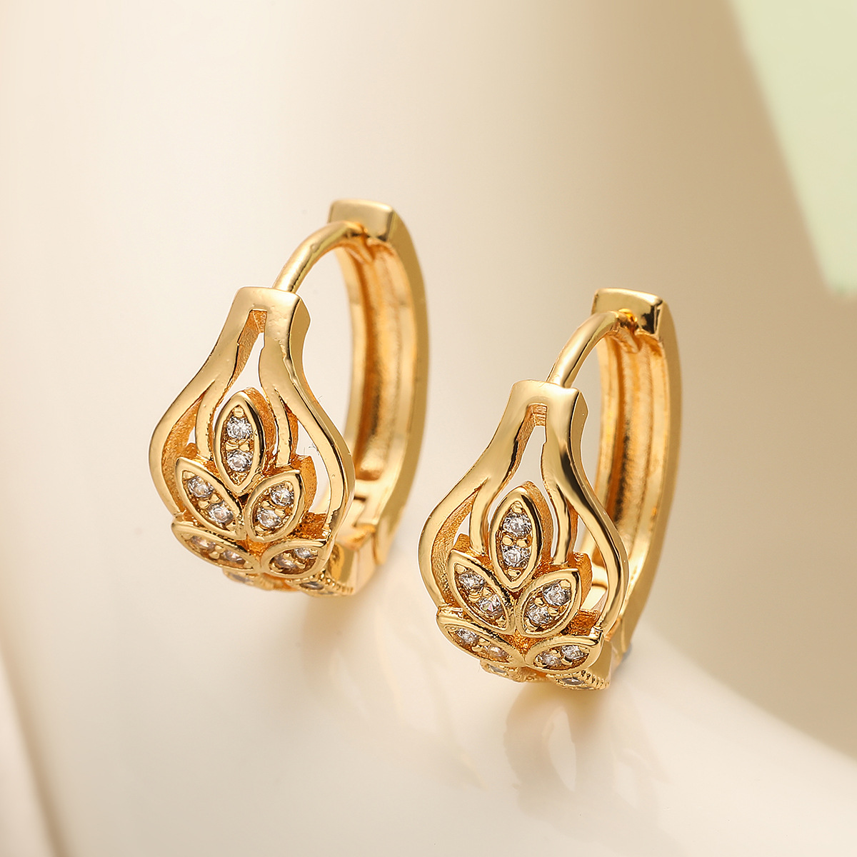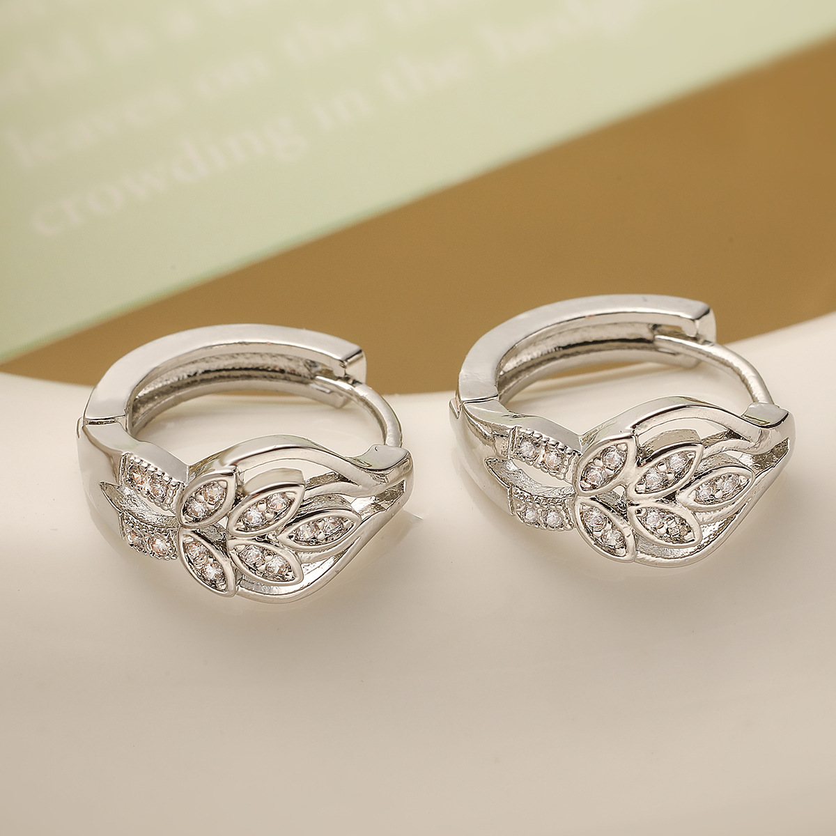 Boucles d'oreilles en laiton zircon cubique pavent, feuille, Placage, pavé de micro zircon & pour femme & creux, plus de couleurs à choisir, Vendu par paire