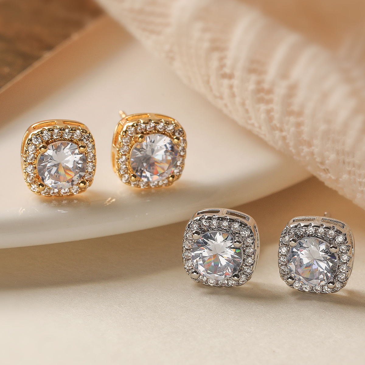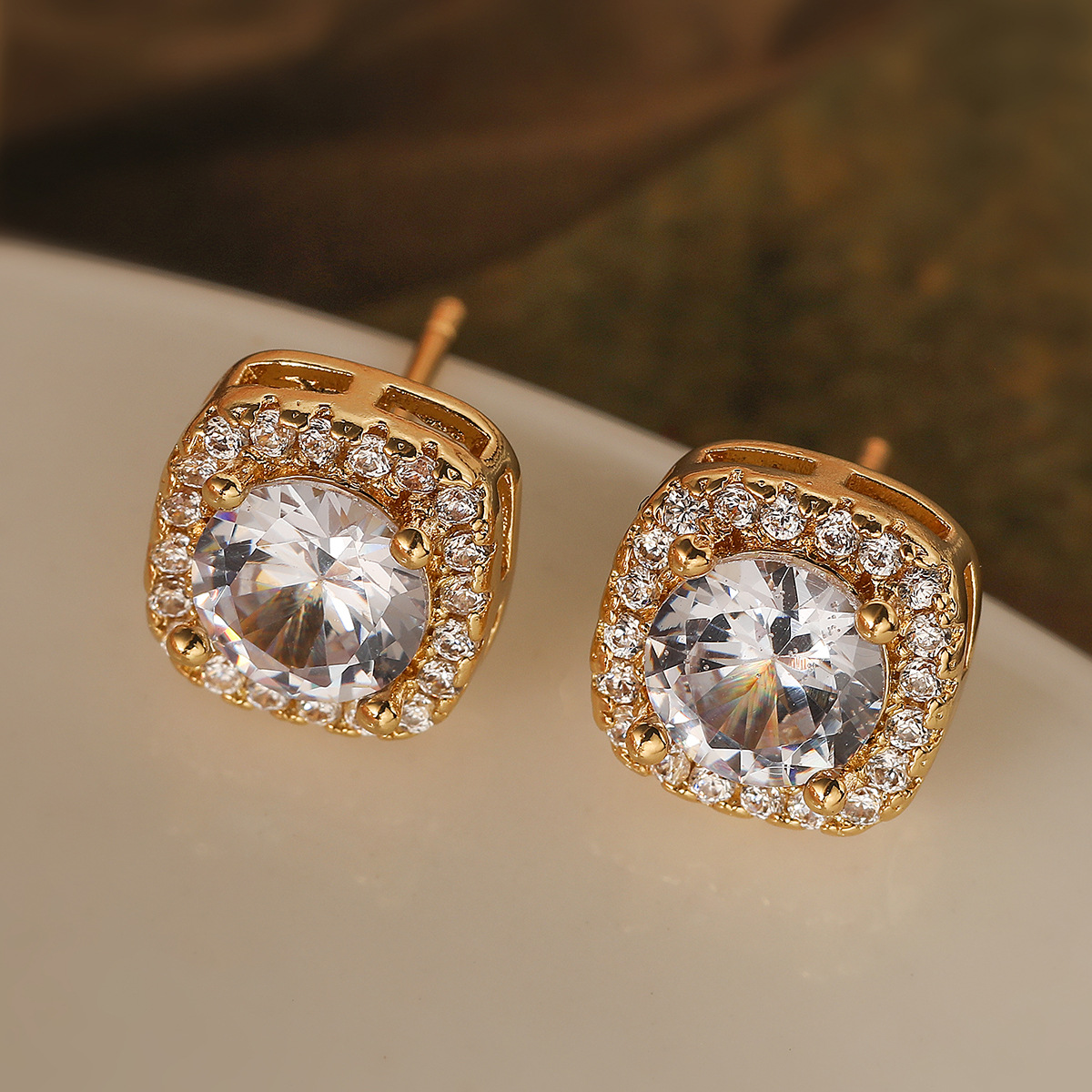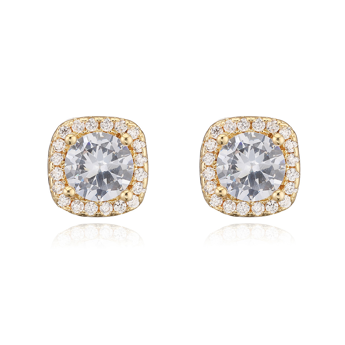 Boucles d'oreilles en laiton zircon cubique pavent, Placage, trois pièces & pour femme, doré, Vendu par fixé