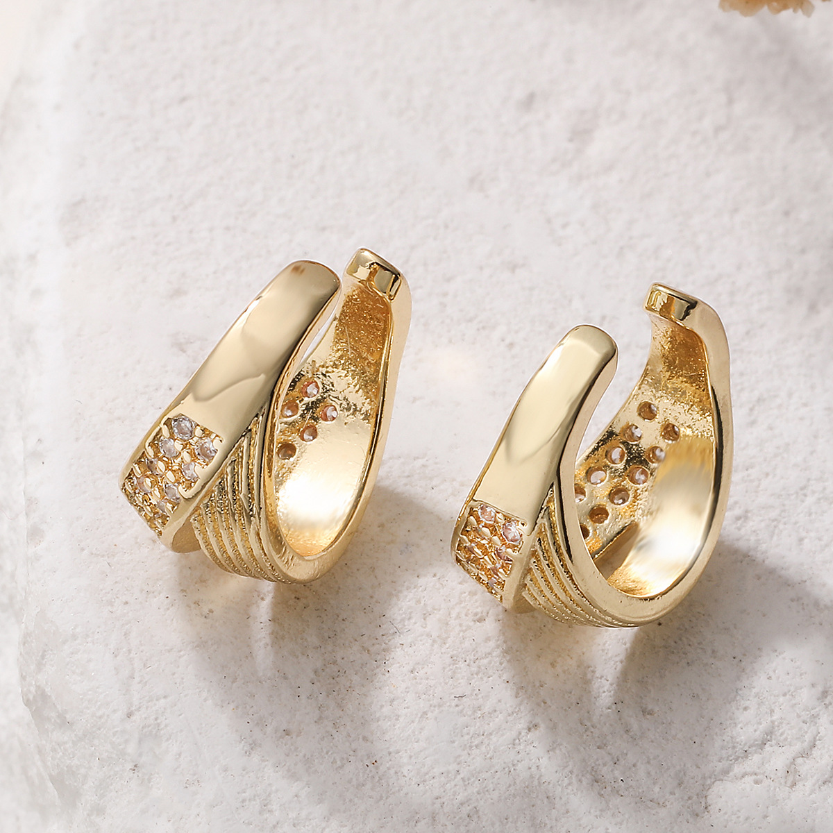 Boucles d'oreilles en laiton zircon cubique pavent, Plaqué d'or, pavé de micro zircon & pour femme, Vendu par paire