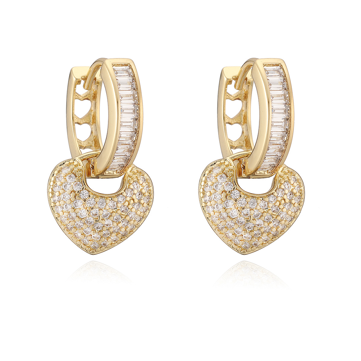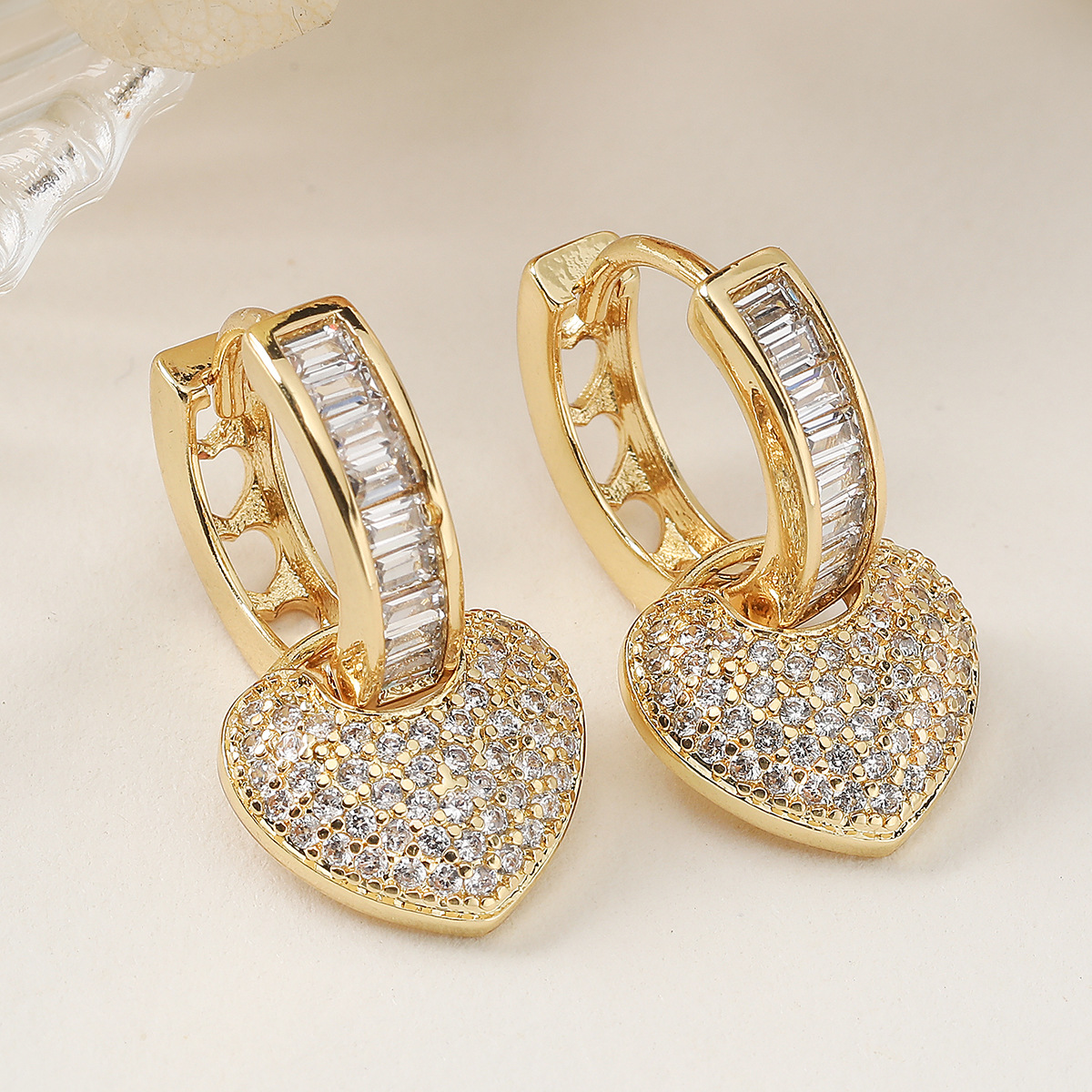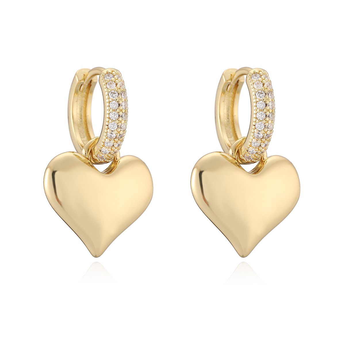 Boucles d'oreilles en laiton zircon cubique pavent, coeur, Plaqué d'or, styles différents pour le choix & pavé de micro zircon & pour femme, Vendu par paire